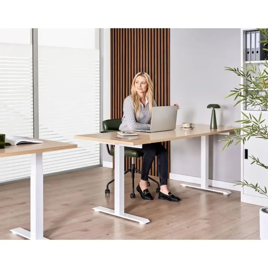 Belangrijkste eigenschappen: Elektrisch in hoogte verstelbaar, Tafelmodel programmeerbaar in 3 verschillende hoogtes, Zachte hoogteverstelling en soepele motoriek dankzij de dubbele motor, Dik tafelblad met hoogwaardige melamine-coating, Hoog draagvermogen, Brede poten voor optimale stabiliteit, USB Oplaadpunt, Anti-botsingssensor voorkomt stoten tegen objecten