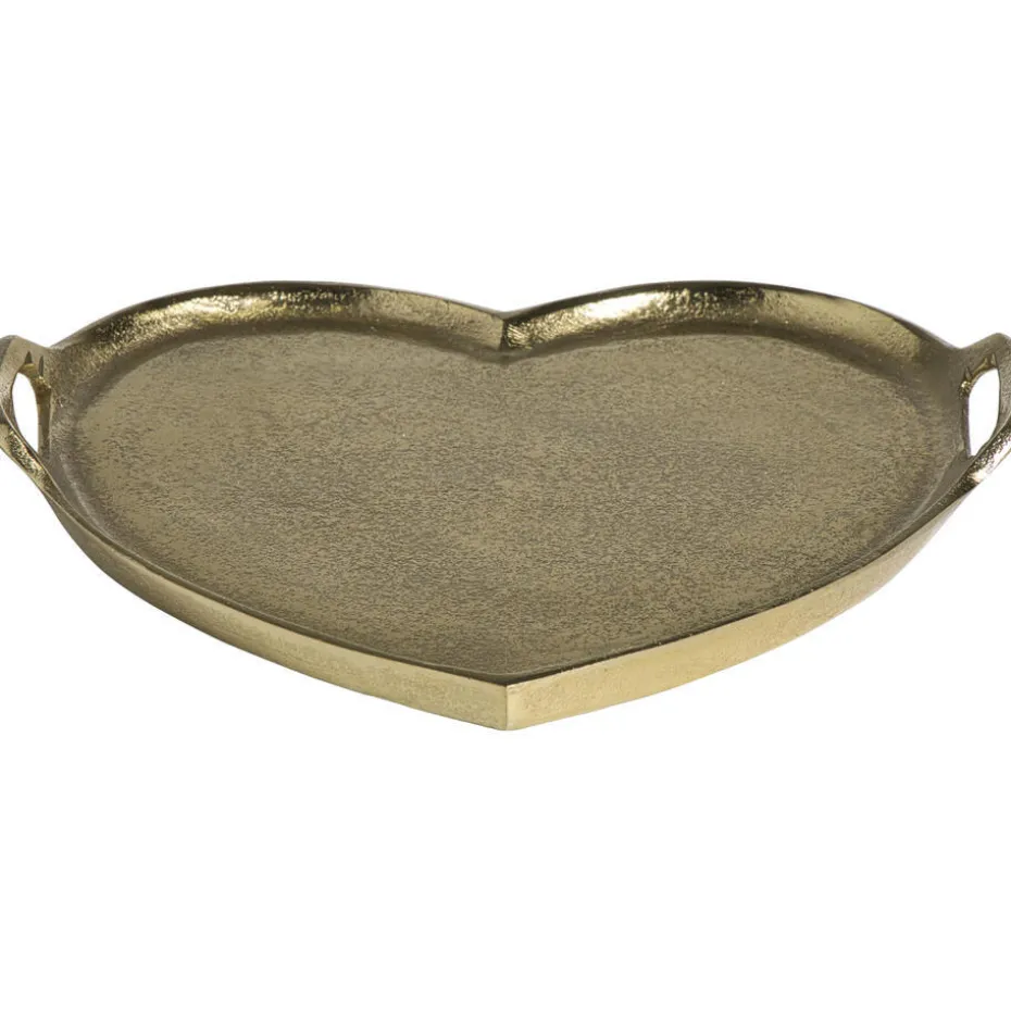 Dit hartvormige dienblad in een stijlvolle goudkleurige uitvoering is de perfecte mix van elegantie en functionaliteit. Met een afmeting van 30×33 cm en een dikte van 3,5 cm biedt het voldoende ruimte om drankjes, hapjes of decoraties op te presenteren. De handige grepen aan beide zijden maken het tillen en serveren eenvoudig en comfortabel, ideaal voor gezellige momenten met vrienden of familie. Dankzij het robuuste materiaal is het dienblad stevig en duurzaam, waardoor het geschikt is voor dagelijks gebruik. Het opvallende hartdesign geeft een romantische en luxe uitstraling aan je interieur en maakt het dienblad ook perfect als decoratief item. Met dit dienblad combineer je praktisch gemak met een stijlvolle touch, voor extra sfeer en gemak bij het serveren.