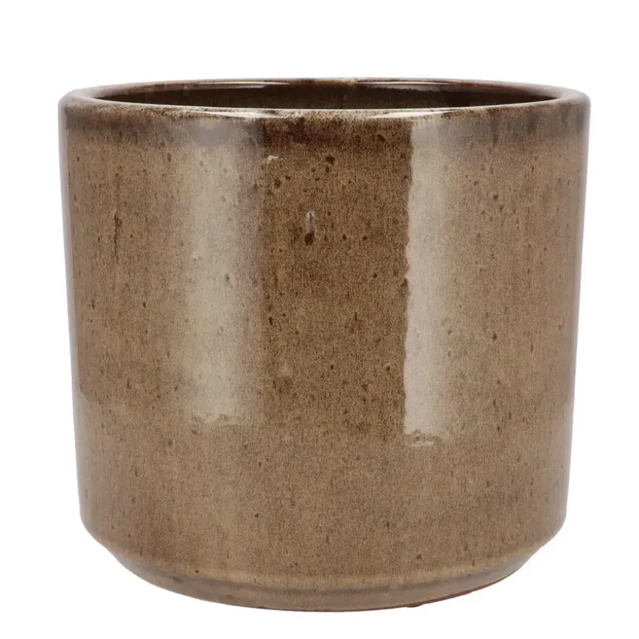 DK Design Bloempot/plantenpot in rond model in de kleur taupe. Prachtige bloempot van glanzend taupe waarin planten en bloemen volledig tot hun recht komen. Te gebruiken voor allerlei soorten kamerplanten, maar ook leuk om bijvoorbeeld een paar takken of droogbloemen in te zetten. Deze eyecatcher voor in huis past in ieder interieur. Afmetingen: D21 x H24 cm. Materiaal: Aardewerk.