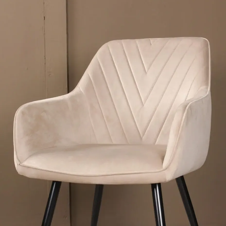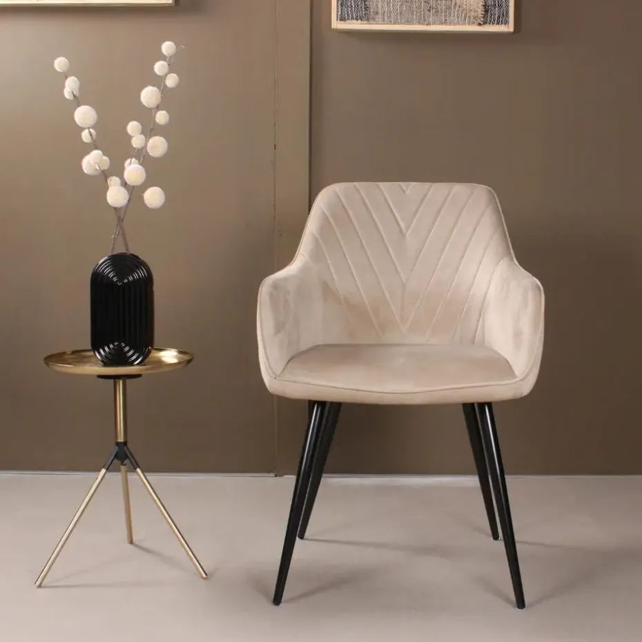 Geef uw interieur een stijlvolle en trendy make-over met armstoel Gaby uit onze eigen collectie! Deze prachtige armstoel is bekleed met een heerlijk zachte velvet stof. Gaby is verkrijgbaar in diverse mooie kleuren; groen, goud, zwart, roze en champagne.