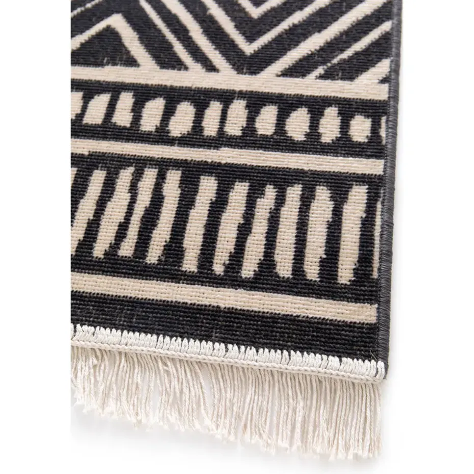 Met zijn opvallende geometrische patronen in contrasterende beige en zwarte kleuren, brengt dit kleed een modern en dynamisch accent in uw woonruimte. Het kleed is vervaardigd van een hoogwaardige mix van 40% polypropyleen, 40% gerecycled katoen en 20% gerecycled polyester, waardoor het niet alleen duurzaam maar ook milieubewust is. Het platgeweven design maakt het kleed veelzijdig en perfect voor zowel woonkamers als eetkamers.