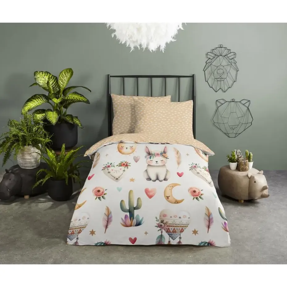 Ledikant baby dekbedovertrek van Good Morning met Woestijndieren en planten met tipi-tent in bohostijl, in de kleur multi, is gemaakt van 100% katoen. Deze kwaliteit is ademend, vochtabsorberend en voelt zacht en soepel aan. Dit leuke ledikant baby dekbedovertrek is een mooie toevoeging aan iedere kinderkamer. Het ledikant baby dekbedovertrek is geschikt voor ieder jaargetijde. Het katoenen 100% katoen is heerlijk koel in de zomer en geeft warmte in de winter.