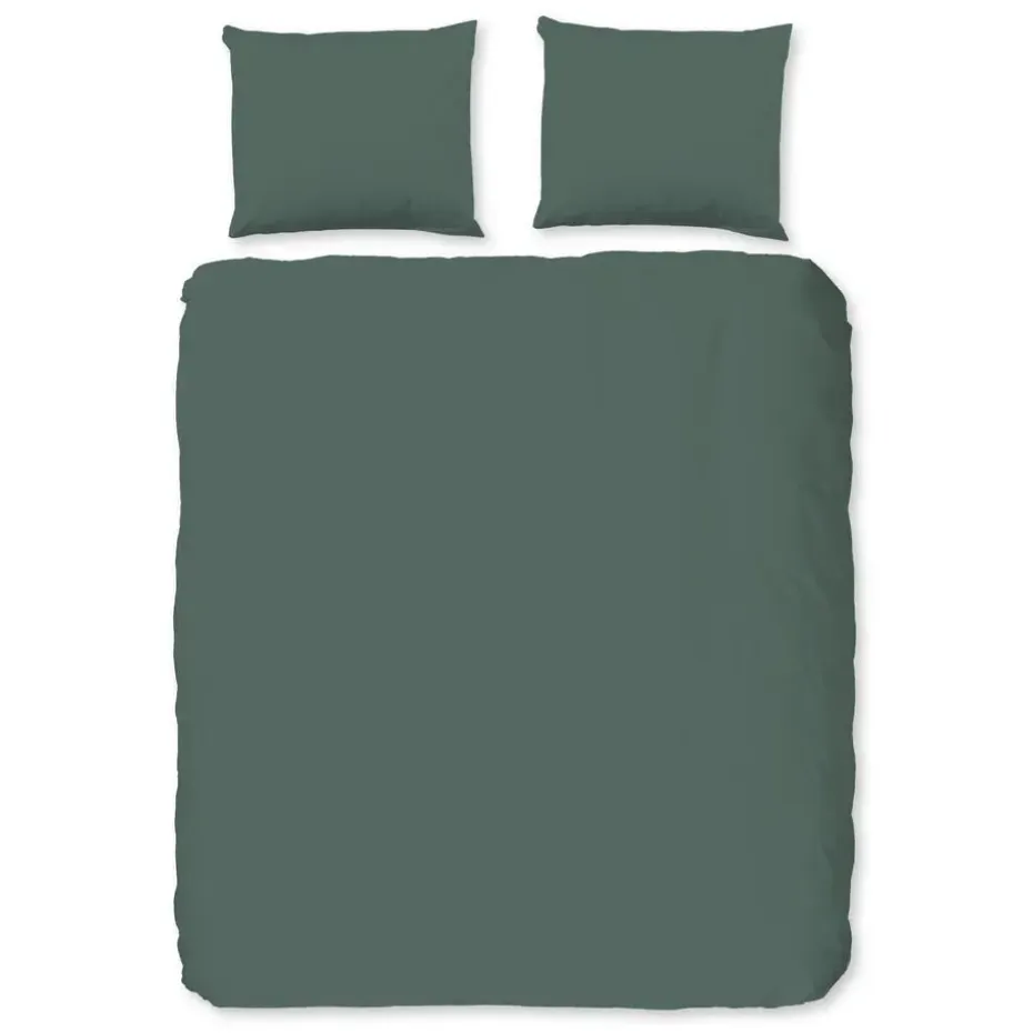 Flanellen dekbedovertrek Uni van Good Morning, in de kleur olijfgroen, met een print van Effen kleur. Het dekbedovertrek is gemaakt van 100% katoen/flanel dat is licht geruwd, waardoor een fluweelzacht laagje ontstaat dat heerlijk warm aanvoelt -perfect voor koude nachten.