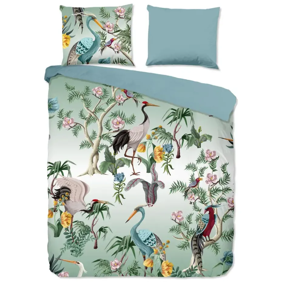 Dekbedovertrek Reeva van Good Morning met kraanvogel, in de kleur multi. Dit is gemaakt van 100% katoen. De kwaliteit is ademend, vochtabsorberend en voelt zacht en soepel aan. Dit mooie dekbedovertrek fleurt iedere slaapkamer op en is geschikt voor elk jaargetijde. Het katoenen dekbedovertrek is heerlijk koel in de zomer en geeft warmte in de winter.