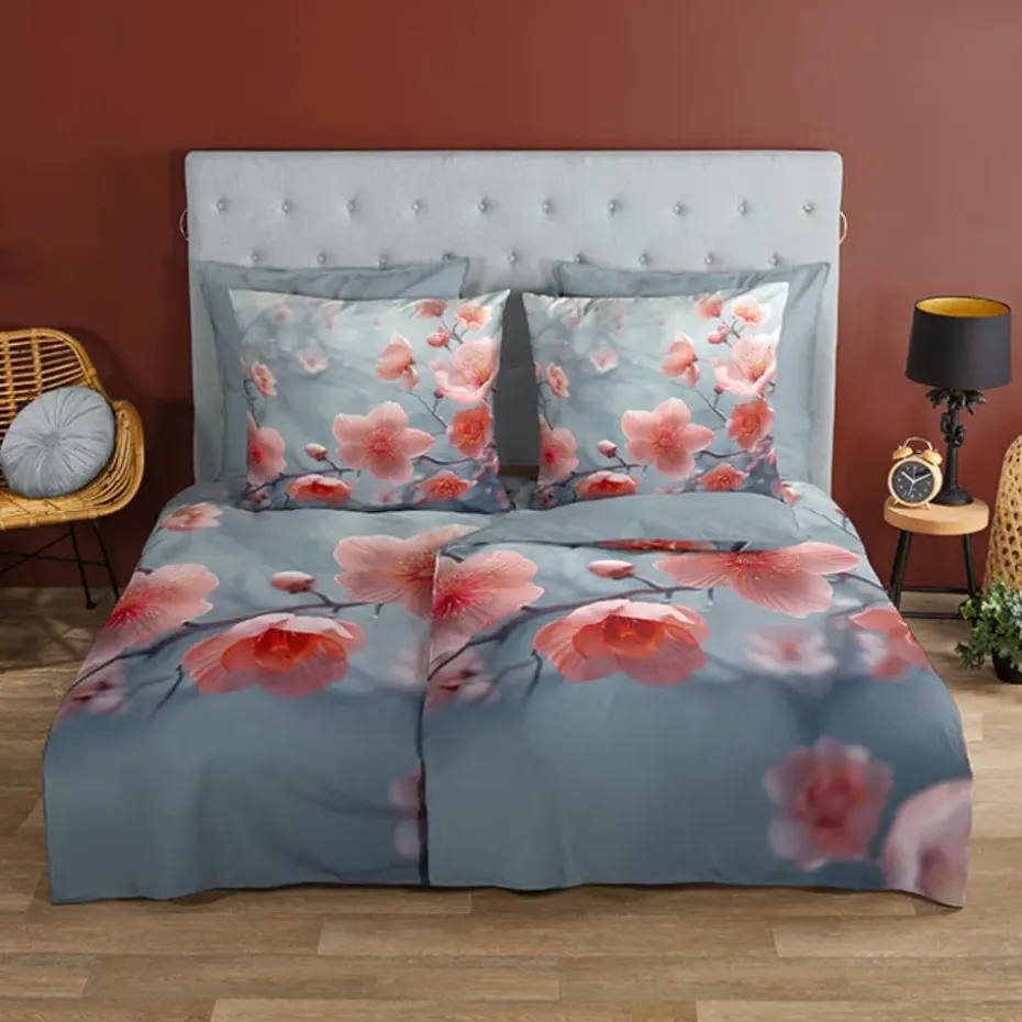 Dekbedovertrek Sartre van Good Morning met bloemen, in de kleur grijs. Dit is gemaakt van 100% katoen. De kwaliteit is ademend, vochtabsorberend en voelt zacht en soepel aan. Dit mooie dekbedovertrek fleurt iedere slaapkamer op en is geschikt voor elk jaargetijde. Het katoenen dekbedovertrek is heerlijk koel in de zomer en geeft warmte in de winter.