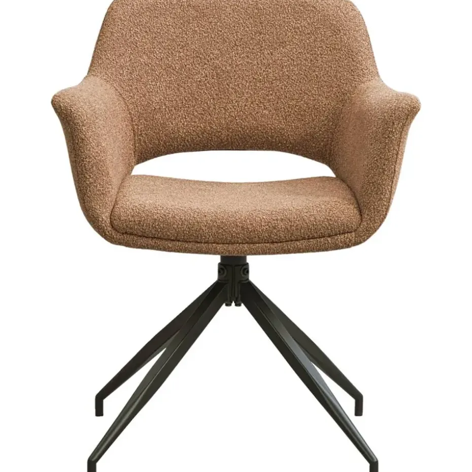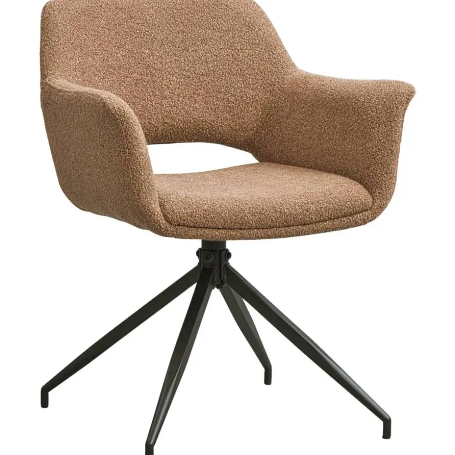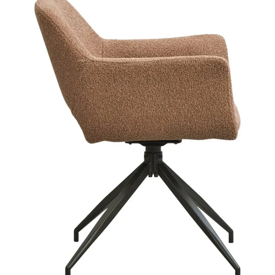Eetkamerstoel Belle is een elegante stoel met een klassiek design. Met zijn oudroze bekleding en zwarte metalen poten past deze stoel in ieder interieur. Door zijn open rug heeft de stoel een open en frisse, eigentijdse uitstraling. De armleuningen en rugleuningen zorgen voor extra comfort en door het draaibare onderstel van 180 graden, met terugdraaifunctie, kun je makkelijk aanschuiven en uren blijven tafelen. Voeg een vleugje stijl toe aan jouw eetkamer!
