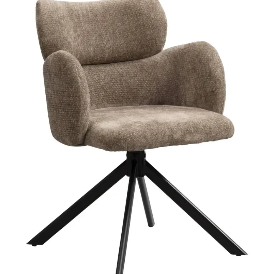 Eetkamerstoel Coco is bekleed met een zachte, taupekleurige stof. Deze eetkamerstoel maakt elk eetmoment relaxed. De zachte bekleding en armleuningen zorgen voor een comfortabele zit, terwijl de 180 graden draaibare zitting met terugdraaifunctie het leven nét even een stukje makkelijker maakt.