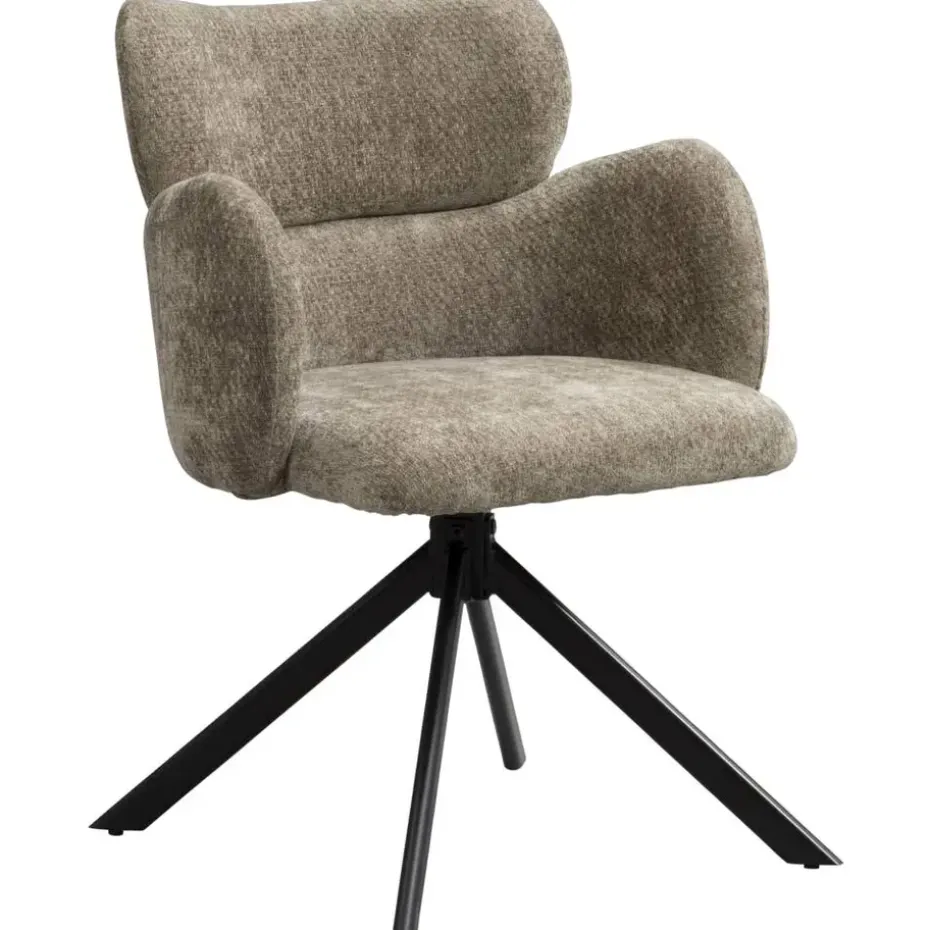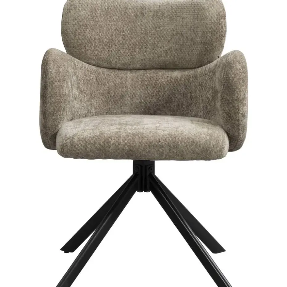 Eetkamerstoel Coco is bekleed met een zachte, vergrijsd groenkleurige stof. Deze eetkamerstoel maakt elk eetmoment relaxed. De zachte bekleding en armleuningen zorgen voor een comfortabele zit, terwijl de 180 graden draaibare zitting met terugdraaifunctie het leven nét even een stukje makkelijker maakt.