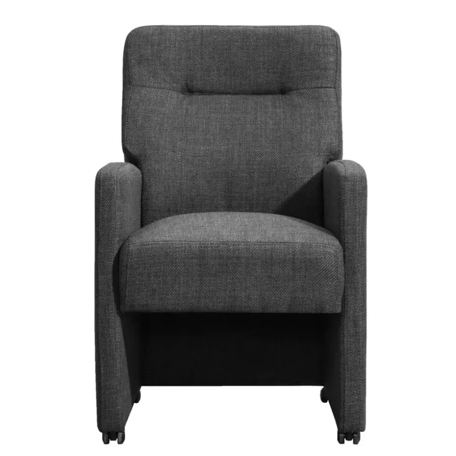 Eetkamerstoel Daniel in de kleur antraciet is een stoere zeer comfortabele eetkamerfauteuil. Deze stoel heeft een gemeleerde stof. De comfortabele zitting met armleuningen, de hoge rug en de handige wieltjes zorgen ervoor dat je avonden achter elkaar kan genieten van het (na)tafelen.
