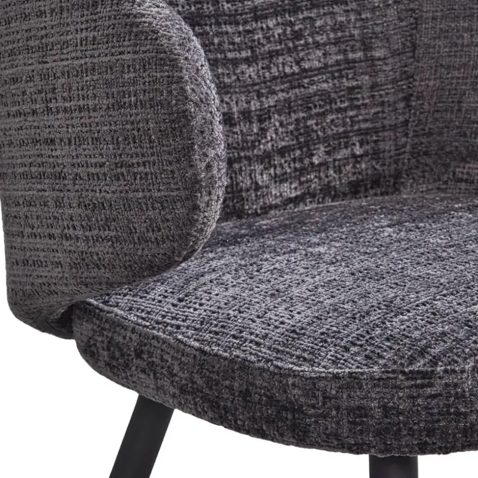 Eetkamerstoel Demi is trendy stoel, bekleed met een antracietkleurige stof. De bouclé achtige zitting in combinatie met het zwartkleurige, metalen onderstel maakt het tot de perfecte eetkamerstoel. Stoel Demi heeft een royale zitting met armleuningen, dit zorgt voor een optimaal zitcomfort.