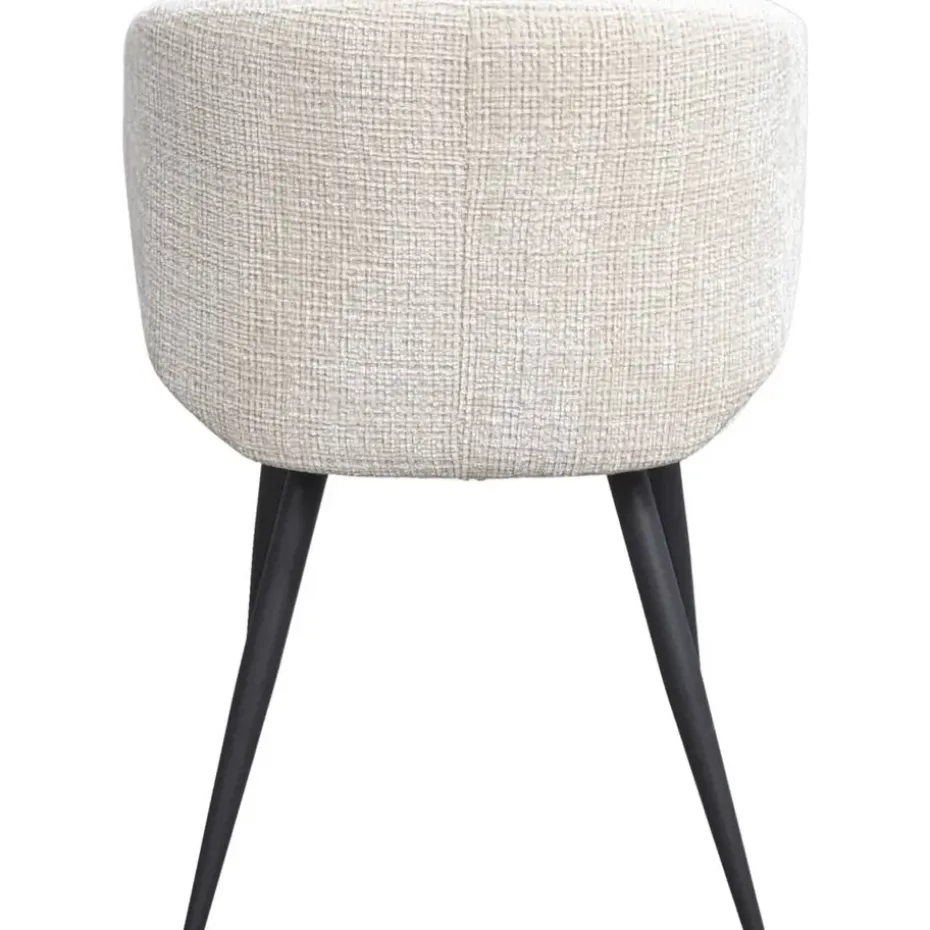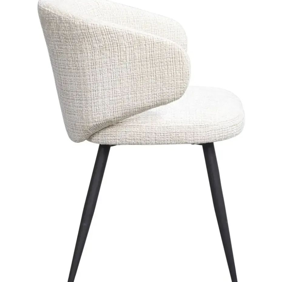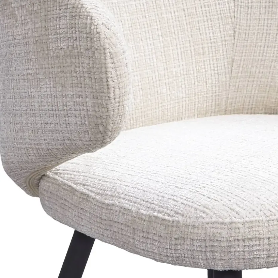 Eetkamerstoel Demi is trendy stoel, bekleed met een crèmekleurige stof. De bouclé achtige zitting in combinatie met het zwartkleurige, metalen onderstel maakt het tot de perfecte eetkamerstoel. Stoel Demi heeft een royale zitting met armleuningen, dit zorgt voor een optimaal zitcomfort.