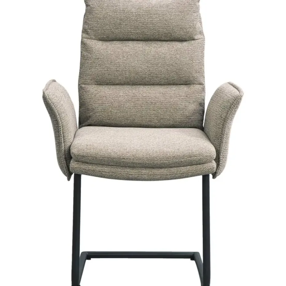 Eetkamerstoel Evi heeft een modern design, waardoor het perfect in jouw strakke interieur past. Een stevige eetkamerstoel die geschikt is voor intensief gebruik. Je kunt dus heerlijk lang natafelen in deze heerlijke stoelen. De “omgevouwen” armleuningen zorgen voor een unieke uitstraling en bieden extra comfort. Ga jij voor de taupe kleur of past de zand kleur ook in jouw interieur?