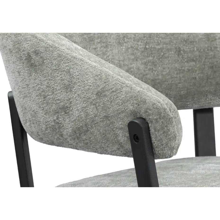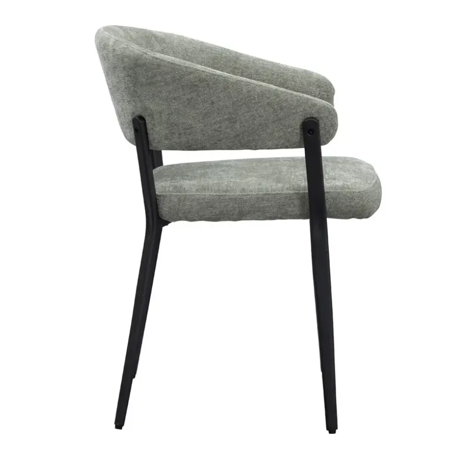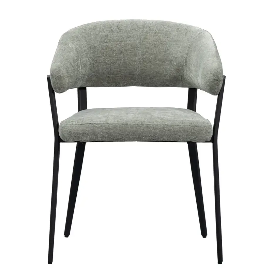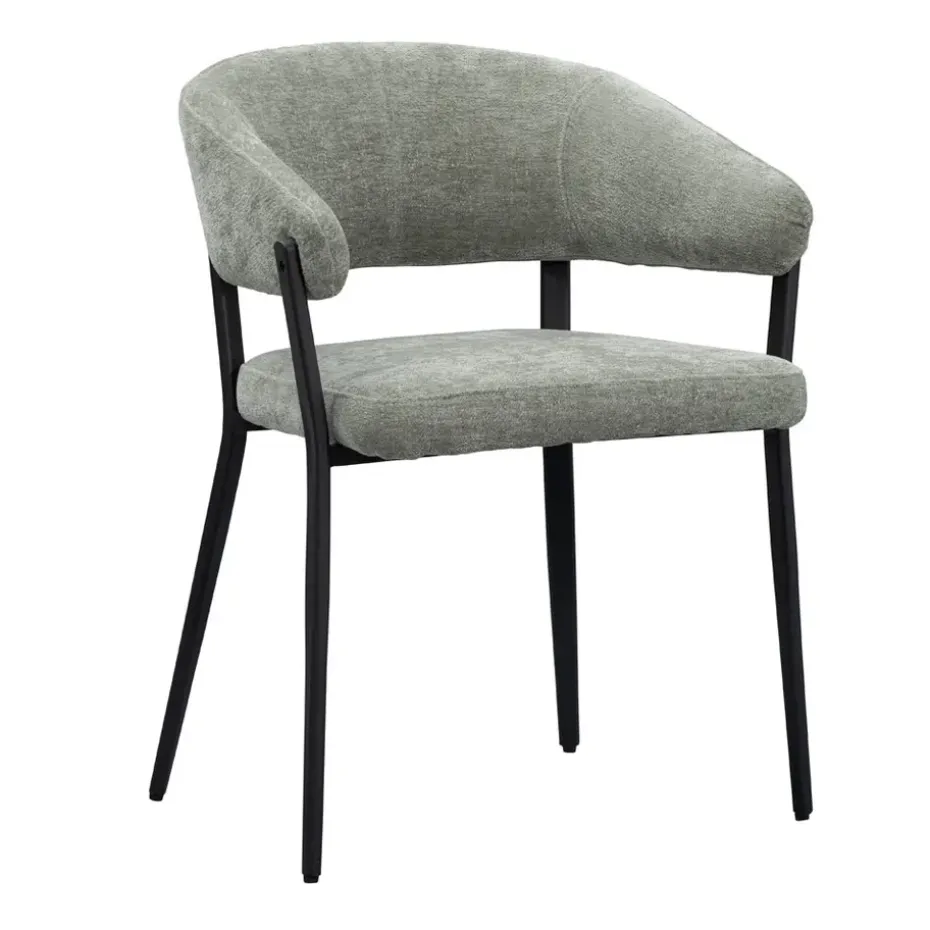 Wanneer je op zoek bent naar een moderne eetkamerstoel, dan is Eetkamerstoel Liv perfect voor jou. Met haar groene bekleding en zwarte metalen poten past deze stoel in ieder interieur. Liv heeft ronde vormen en een open rugleuning waardoor de stoel een frisse uitstaling krijgt. De metalen poten en zachte bekleding geven de stoel een trendy look en door de comfortabele armleuningen kun je uren tafelen. Makkelijk onder te tafel te schuiven en verkijgbaar in verschillende kleuren.