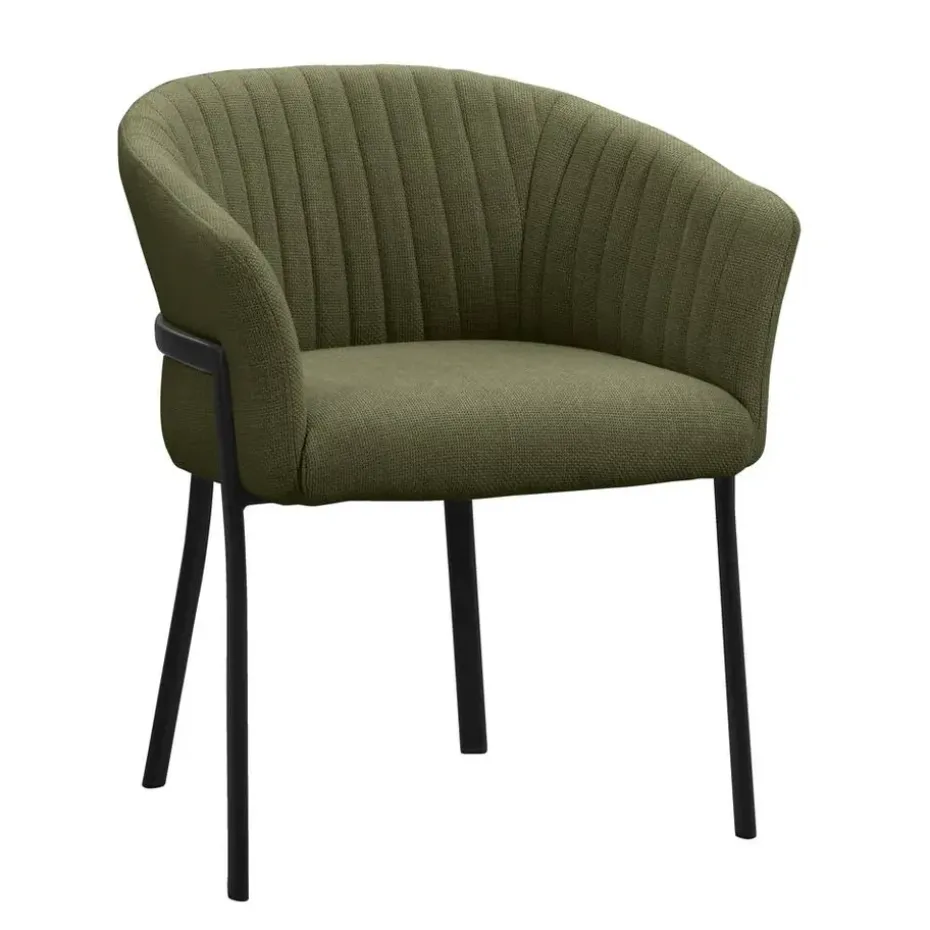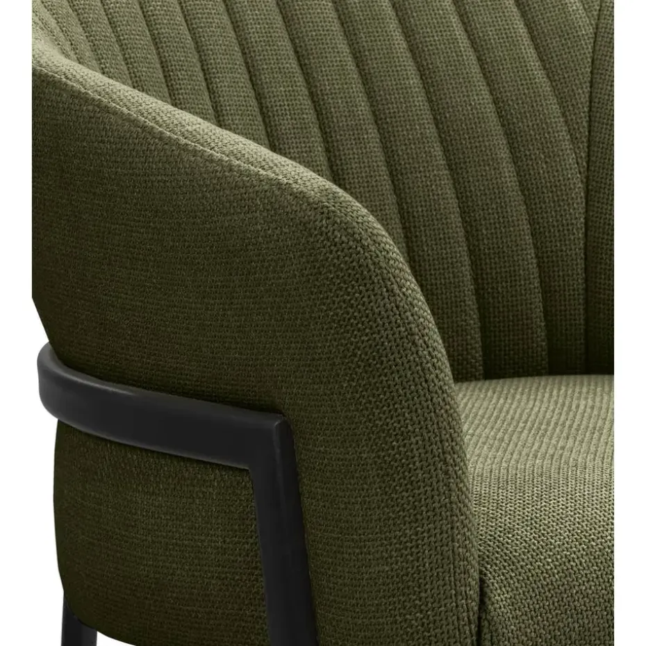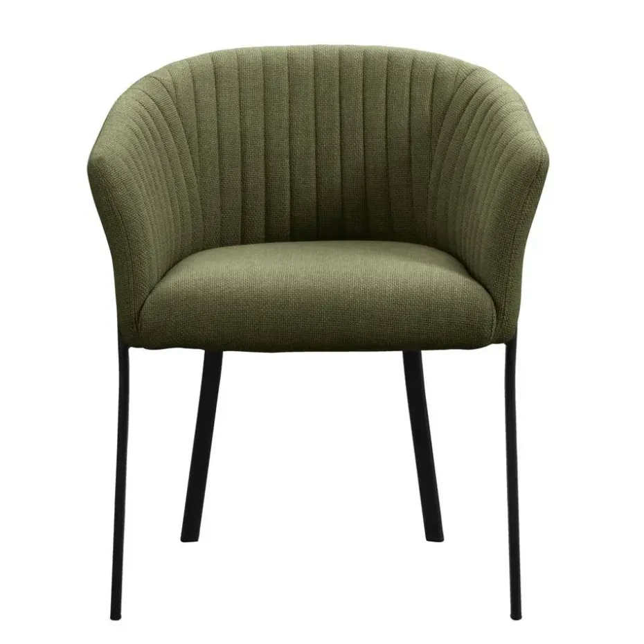 Eetkamerstoel Luigi is een tijdloze stoel die jouw eetkamer een unieke uitstraling geeft! De stof waarmee de zitting en rug- en armleuningen bekleed zijn is slijtvast en heeft een prachtige groene tint, waardoor hij in ieder interieur past. De metalen poten geven de stoel een trendy look en door de comfortabele armleuningen kun je uren tafelen. Ook verkrijgbaar in een zand kleur en antraciet.