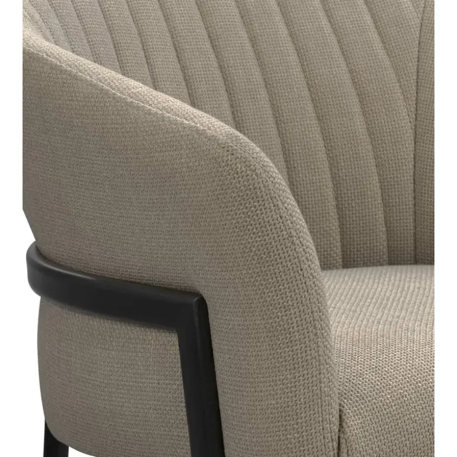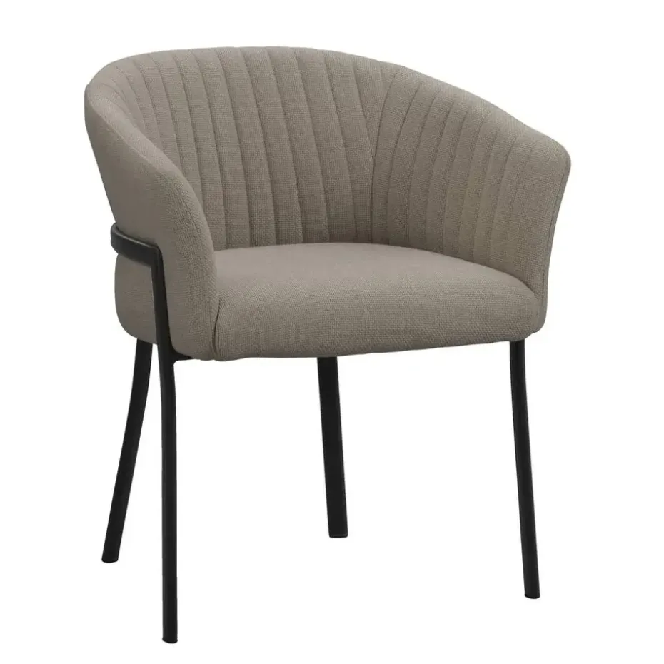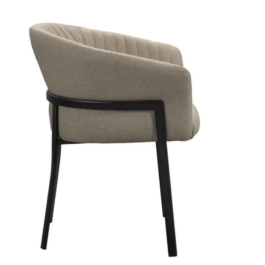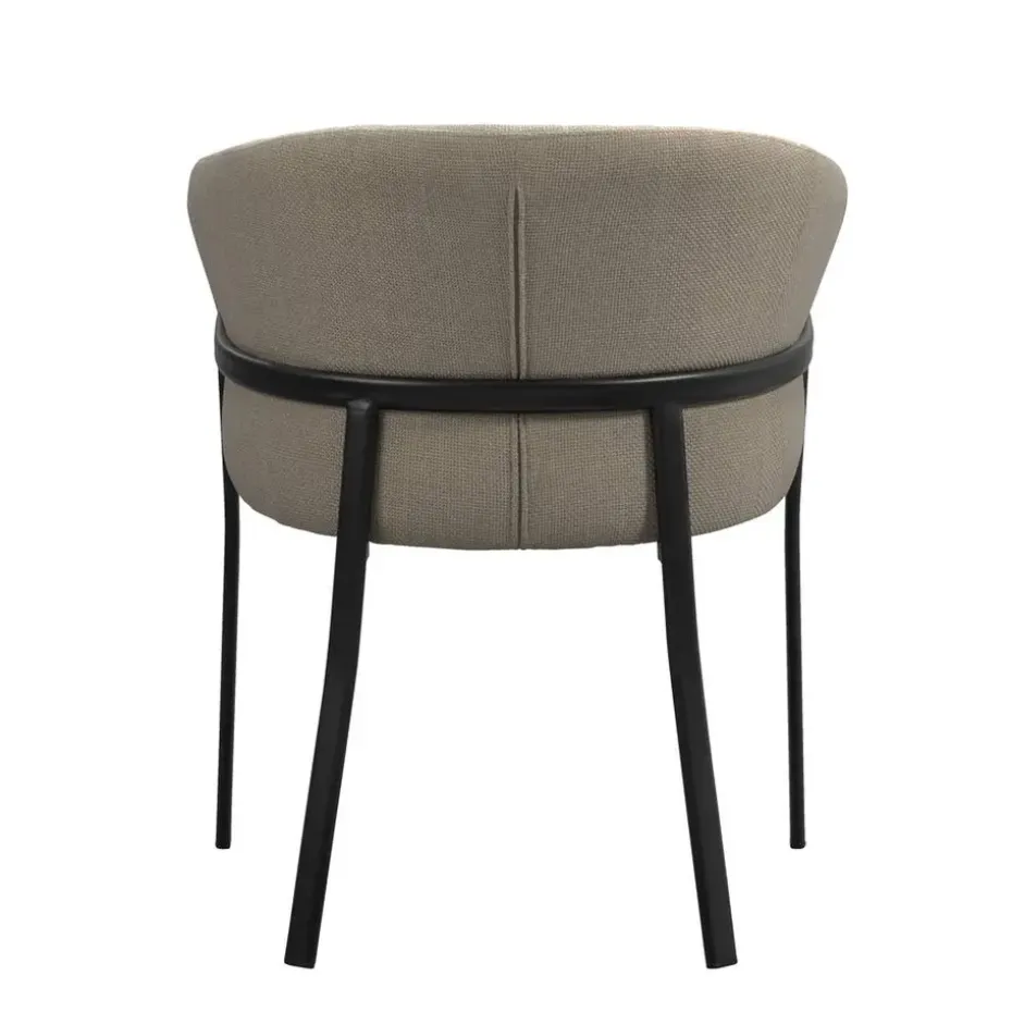 Eetkamerstoel Luigi is een tijdloze stoel die jouw eetkamer een unieke uitstraling geeft! De stof waarmee de zitting en rug- en armleuningen bekleed zijn is slijtvast en heeft een prachtige zand tint, waardoor hij in ieder interieur past. De metalen poten geven de stoel een trendy look en door de comfortabele armleuningen kun je uren tafelen. Ook verkrijgbaar in het groen.