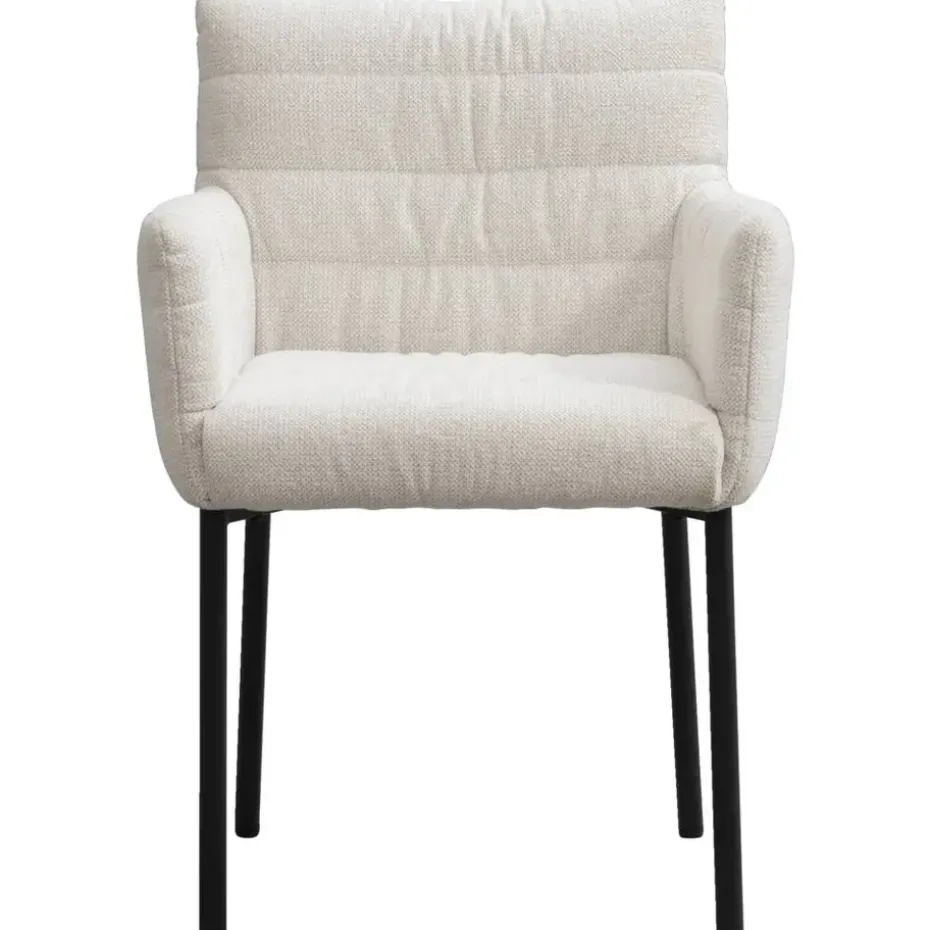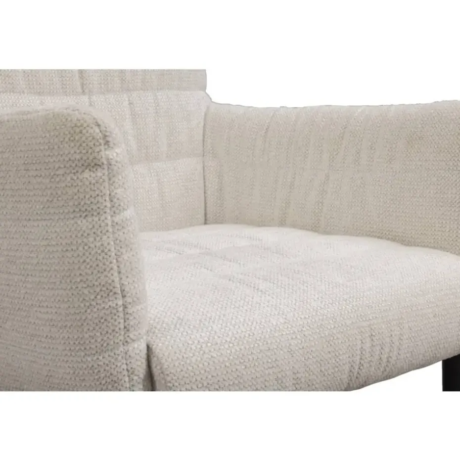 Eetkamerstoel Mees is een extra comfortabele stoel, bekleed met een crèmekleurige stof. De zitting in combinatie met het robuuste, metalen onderstel maakt hem tot de perfecte eetkamerstoel. Stoel Mees heeft een royale zitting met armleuningen, dit zorgt voor een optimaal zitcomfort.