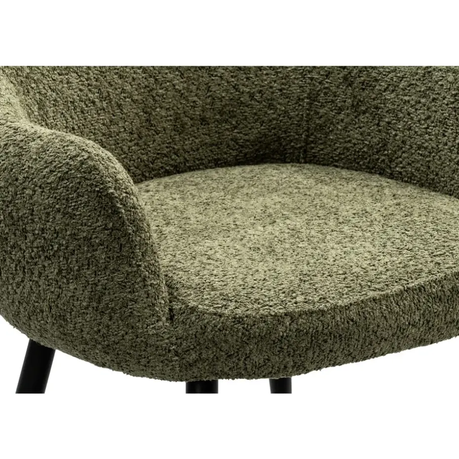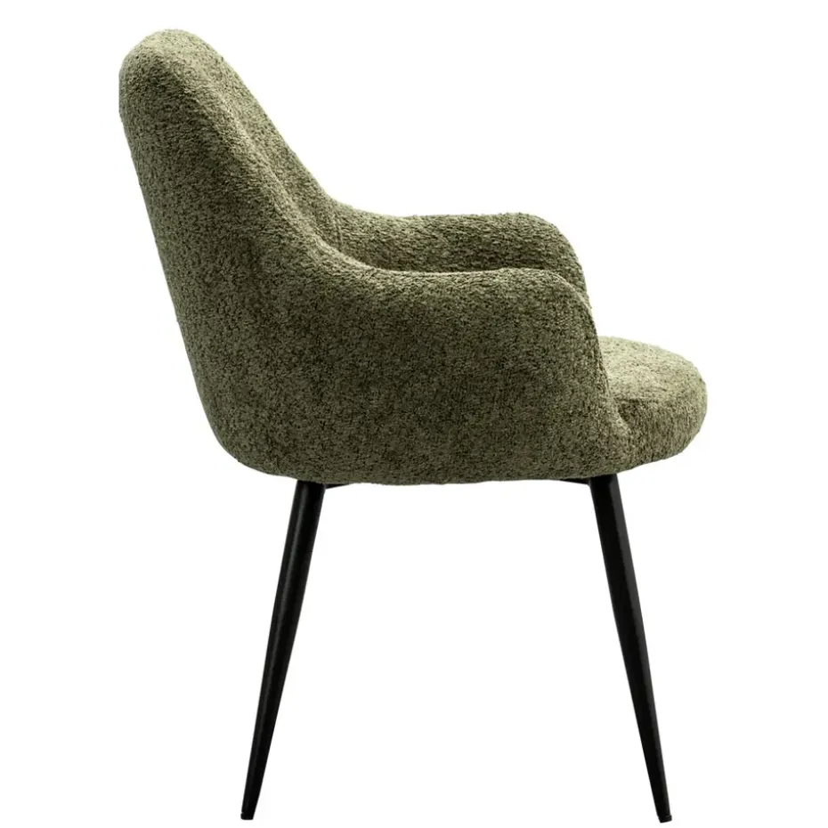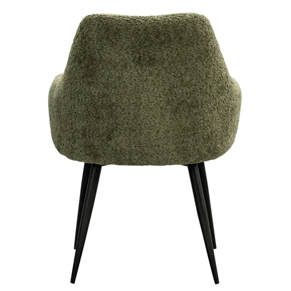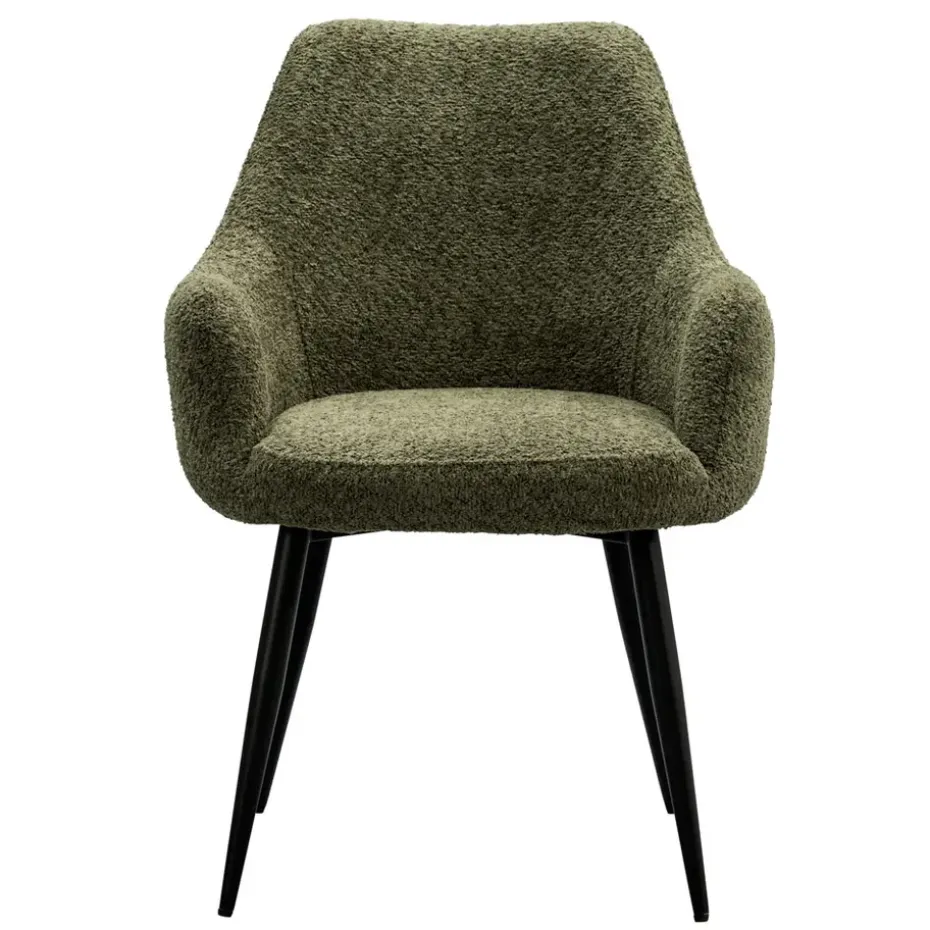 Eetkamerstoel Noah is een moderne stoel met een natuurlijke touch. Met zijn bekleding in de kleur groen en zwarte poten past deze stoel in ieder interieur. Door de ronde vormen heeft de stoel een open en frisse uitstaling. De zwarte poten geven de stoel een trendy look en door de comfortabele armleuningen kun je uren tafelen. Voeg een vleugje stijl toe aan jouw eetkamer!