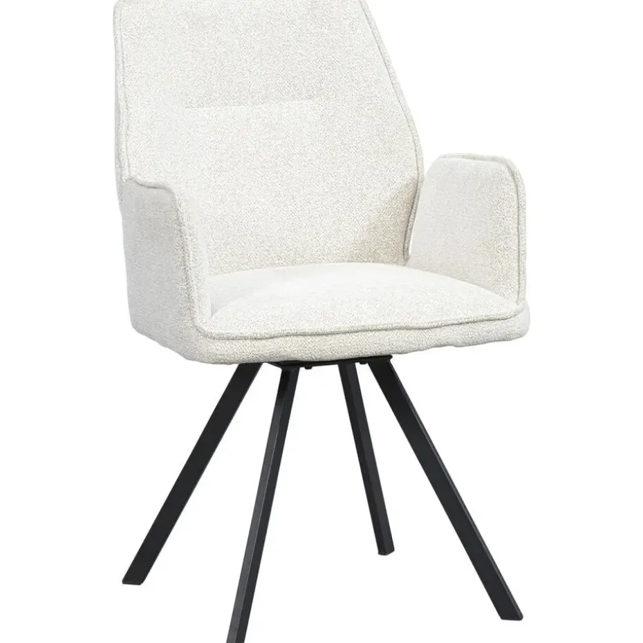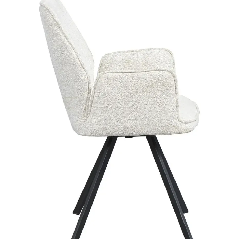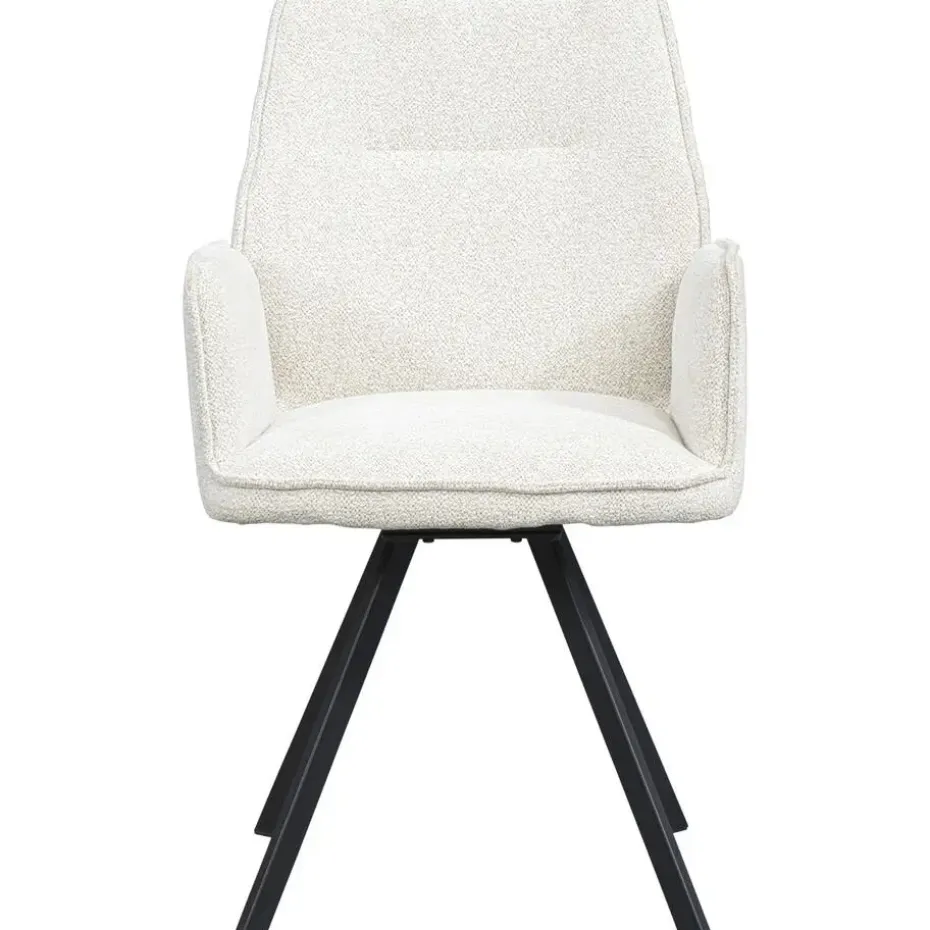 Eetkamerstoel Raffy is een trendy en stijlvolle eetkamerstoel met armleuning. De stoel heeft een kuipzitting en een stoer onderstel. De stoel is 180 graden draaibaar én heeft een automatische terugdraaifunctie. De kuip is bekleed met stof Raven in de kleur crème. Het zwarte onderstel maakt de stoel helemaal af. Raffy kenmerkt zich door zijn uitstekende zitcomfort. Maak jouw eigentijdse interieur helemaal af! Eetkamerstoel Raffy is beschikbaar in diverse kleuren en stoffen. Mix and match en stel zo je ideale eethoek samen!