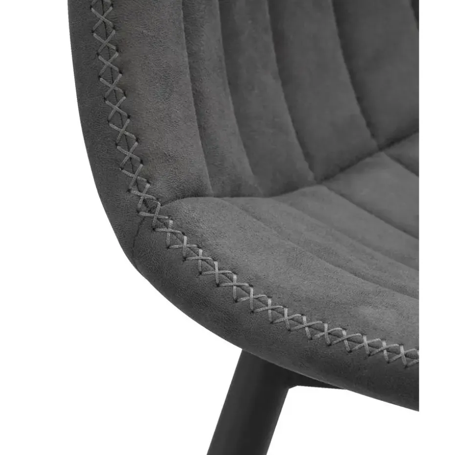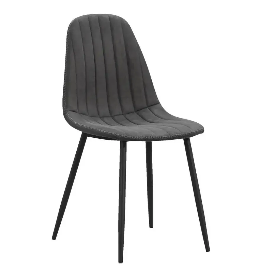 Eetkamerstoel Vince is een trendy stoel voor in jouw interieur. De rugleuning en de zitting zijn bekleed met een grijze/antraciet preston stof. Dit stoeltje staat op vier slanke poten van zwart metaal. De stoel zit comfortabel en heeft een trendy look. Combineer deze Vince stoelen met één van onze eetkamertafels en stel zo je eigen eethoek samen.