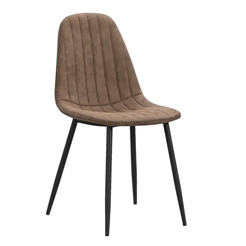 Eetkamerstoel Vince is een trendy stoel voor in jouw interieur. De rugleuning en de zitting zijn bekleed met een cognac preston stof. Dit stoeltje staat op vier slanke poten van zwart metaal. De stoel zit comfortabel en heeft een trendy look. Combineer deze cognac stoelen met één van onze eetkamertafels en stel zo je eigen eethoek samen.