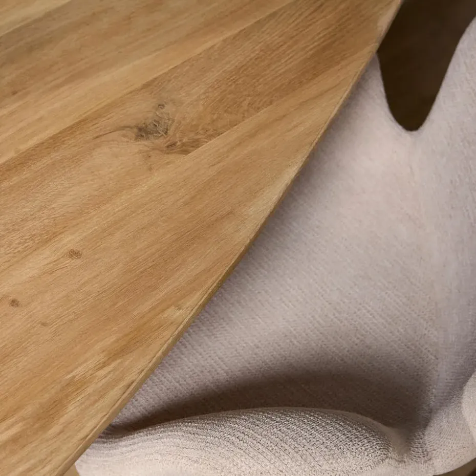 Materiaal: Deze eettafel is vervaardigd uit hoogwaardig eikenhout, een materiaal dat bekend staat om zijn stevigheid en duurzaamheid. Eikenhout heeft een prachtige nerfstructuur die bijdraagt aan de natuurlijke charme van de tafel. Het is een uitstekende keuze voor meubels die intensief gebruikt worden.
