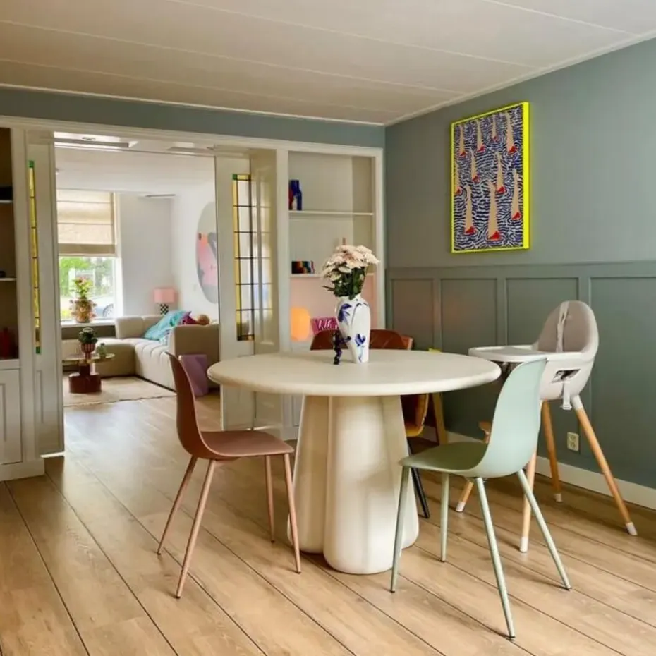 Ontdek de moderne charme van de Eettafel Boaz Rond Beige 120cm, een ware eyecatcher in elk interieur. Deze tafel, vervaardigd uit hoogwaardig MDF met een unieke Beton Ciré afwerking op het tafelblad, combineert stijl met functionaliteit. De beige kleur en ronde vorm zorgen voor een warme en uitnodigende sfeer, terwijl de kwaliteit en het moderne ontwerp van Giga Meubel garant staan voor jarenlang plezier en gebruiksgemak.