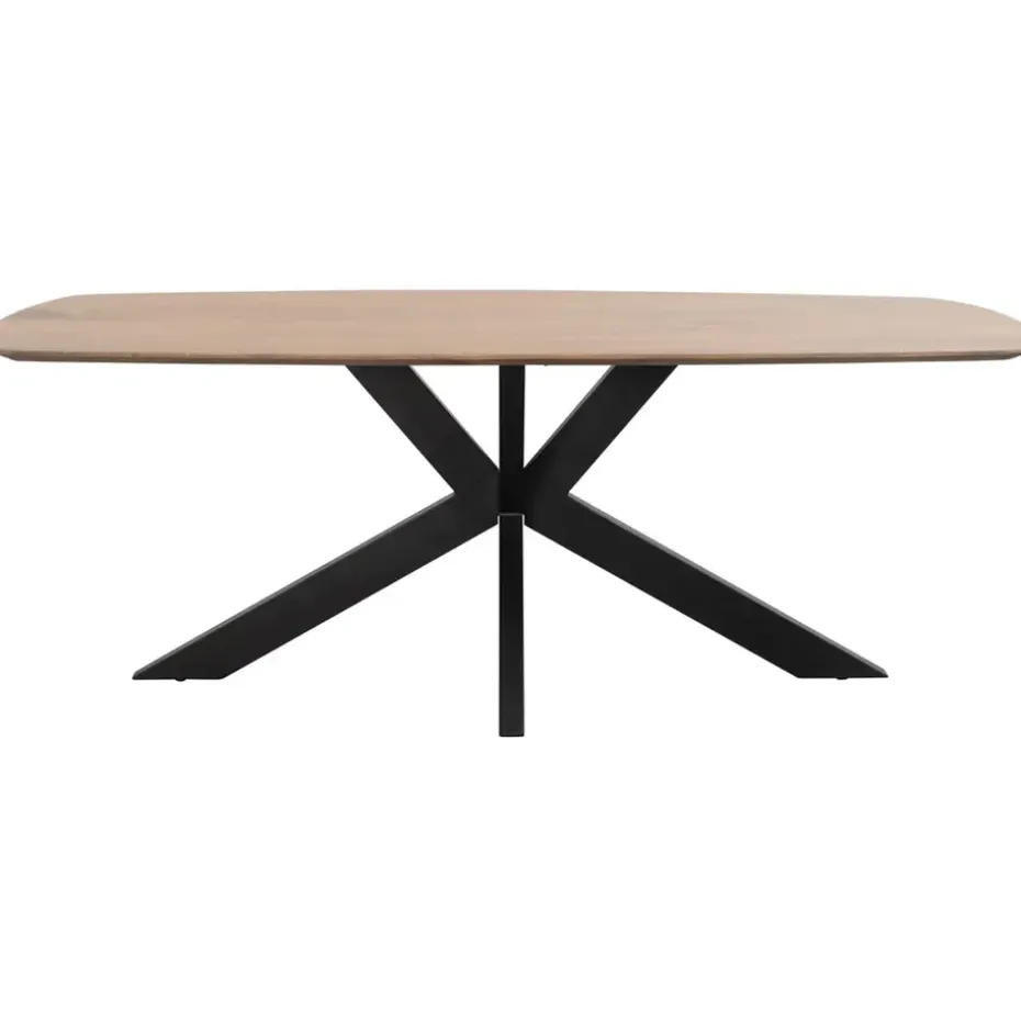 Eettafel Trevora is een echte eyecatcher in je woonkamer. Deze mooie ovale tafel van mangohout met een natuurlijke finish en zal gegarandeerd voor een hoop complimentjes zorgen! De eettafel heeft een mangohouten tafelblad, sterk en met een stijlvolle en luxueuze look. Het spinpoot onderstel is stevig en gemaakt van metaal, waardoor vier stevige poten ontstaan. Het tafelblad heeft een afmeting van 190×100 cm en is al behandeld met een wax. Het wordt niet aangeraden om hier nog een extra coating/lak overheen aan te brengen. De tafel heeft een hoogte van 78 cm dus houd rekening met eetkamerstoelen met armleuningen die je onder je tafel wilt plaatsen.