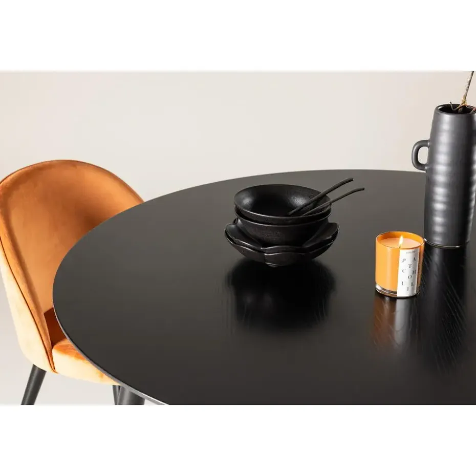 Ontdek de charme van de landelijke stijl met de Fjôrd Eettafel Dipp in een elegante zwarte kleur. Deze ronde tafel, met een diameter van 115 cm, is een perfecte combinatie van stijl en functionaliteit. Het tafelblad is vervaardigd uit MDF met een fijne fineerafwerking, wat zorgt voor een duurzame en onderhoudsvriendelijke oppervlakte. Het stevige stalen onderstel biedt stabiliteit en draagt bij aan de robuuste uitstraling van de tafel. Deze eettafel is ideaal voor gezellige diners en past perfect in zowel moderne als traditionele interieurs.