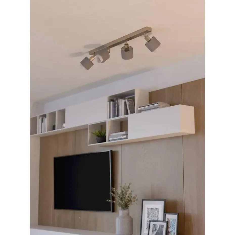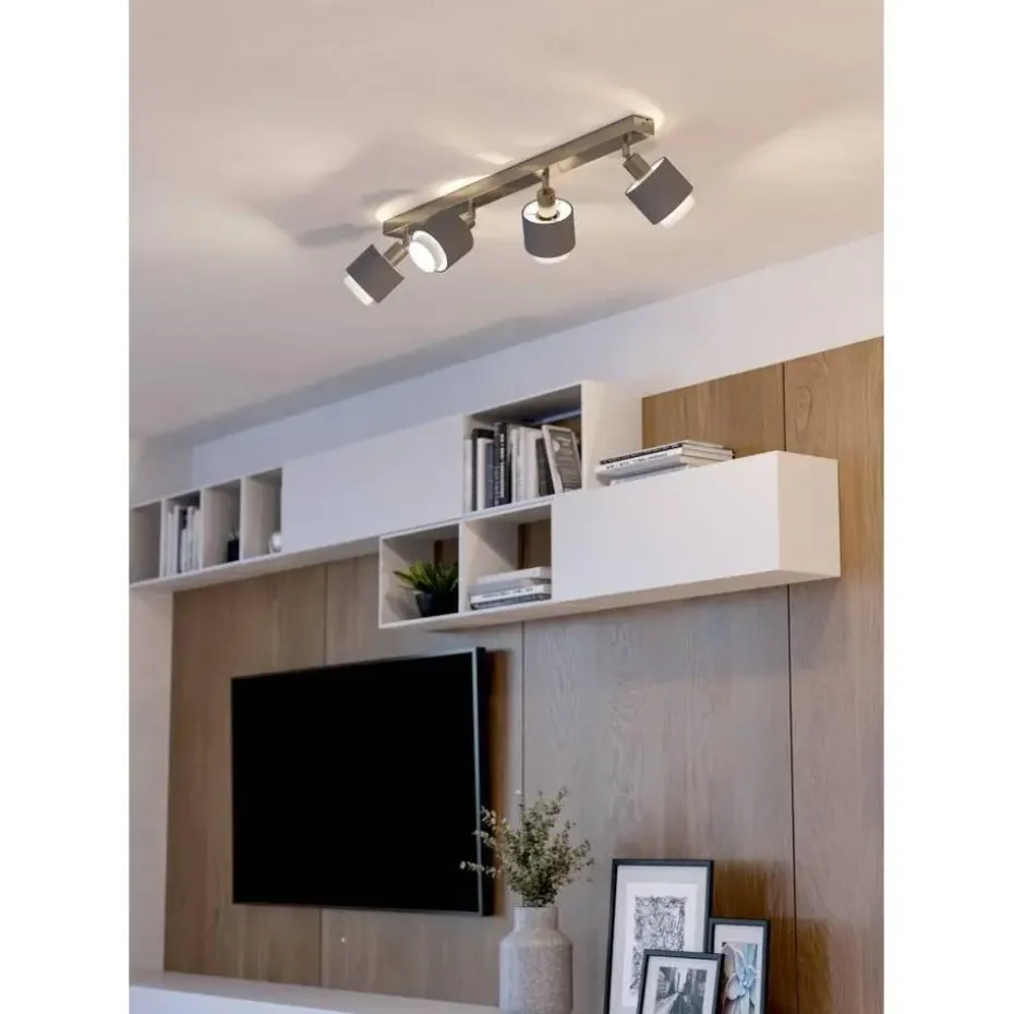 Laat je ruimte stralen met de EGLO Bellizzi spot! Deze kantelbare spot heeft een subtiel design, met twee stoffen kappen in grijs en wit die op ingenieuze wijze over elkaar heen vallen. De Bellizzi spot past perfect in een moderne en sfeervolle interieurstijl. Laat je creativiteit de vrije loop en creëer de perfecte verlichting voor elke ruimte in huis.