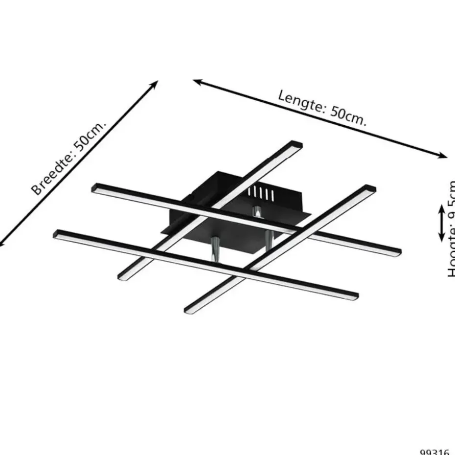 • Moderne wand- en plafondlamp van H 9,5 x L 50 x B 50 cm