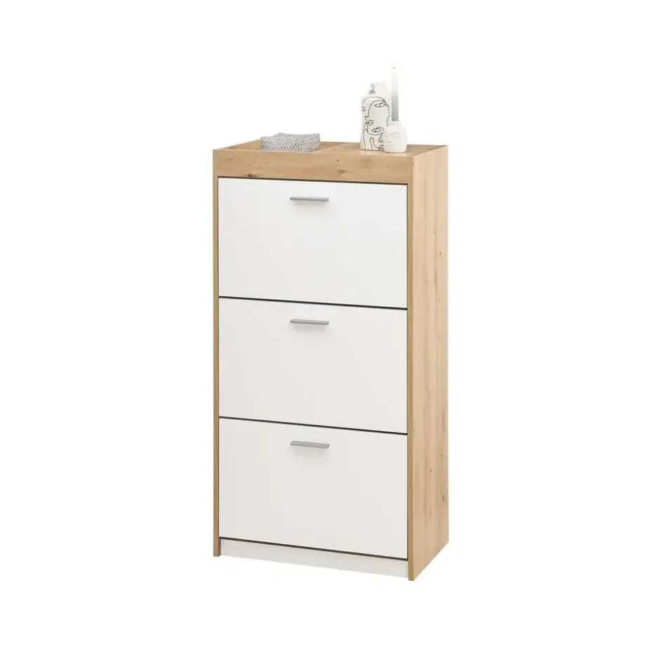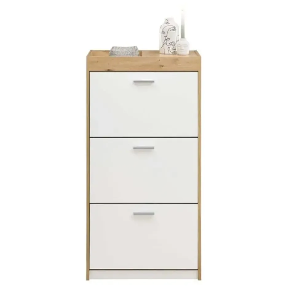 De schoenenkast uit de Paris-reeks belichaamt de perfecte combinatie van elegantie en functionaliteit. Met zijn verfijnde Oak White-design voegt het een vleugje verfijning toe aan elke hal of entree. Deze kast is niet alleen een opbergoplossing, maar ook een decoratief element dat de ruimte verfraait.