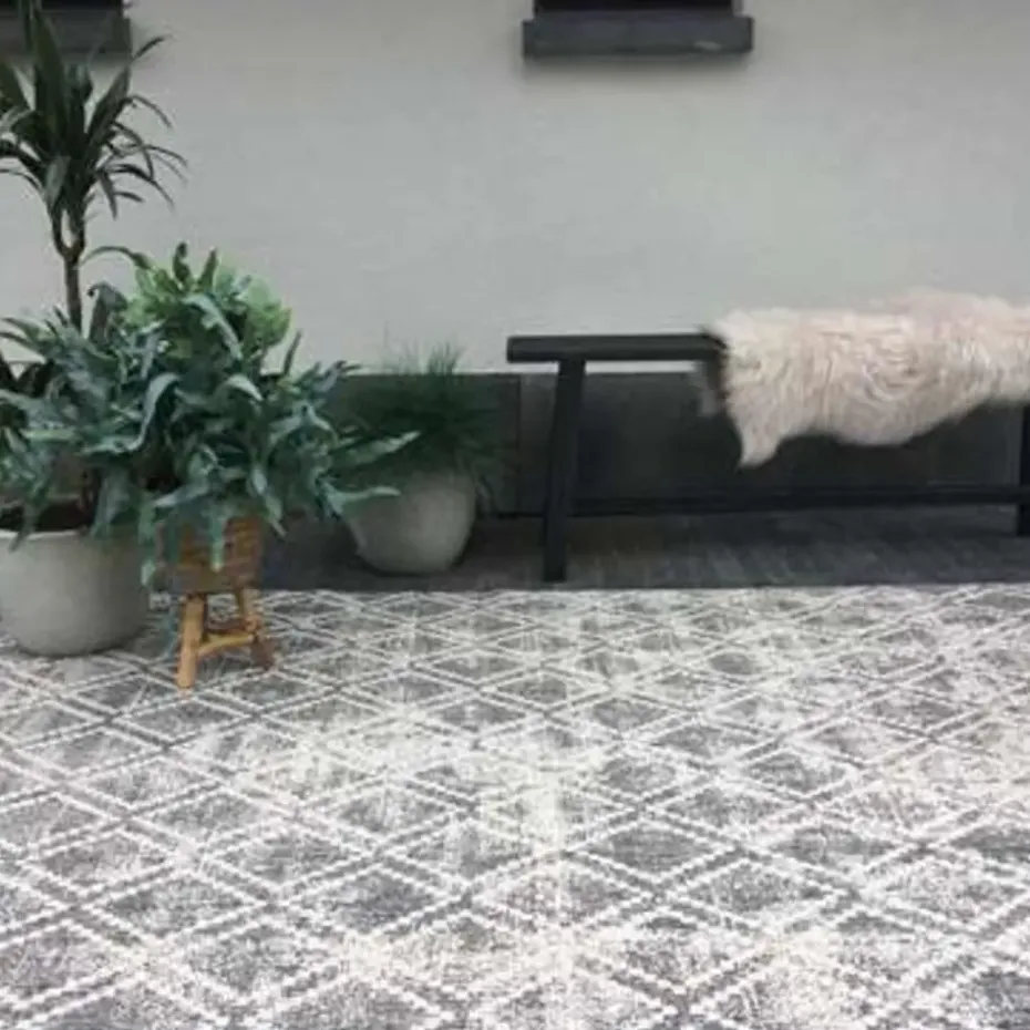 Dit Buiten Vloerkleed Frost in de kleur Grijs/Wit is gemaakt van het materiaal Polypropyleen. Het buiten vloerkleed kan zowel voor binnen als voor buiten gebruikt worden. Ook kun je beide kanten van het vloerkleed gebruiken. Het buiten vloerkleed heeft een bijzonder patroonen is vervaagd op sommige plekken. Met dit buiten vloerkleed creëer je een mooie sfeer op je terras.