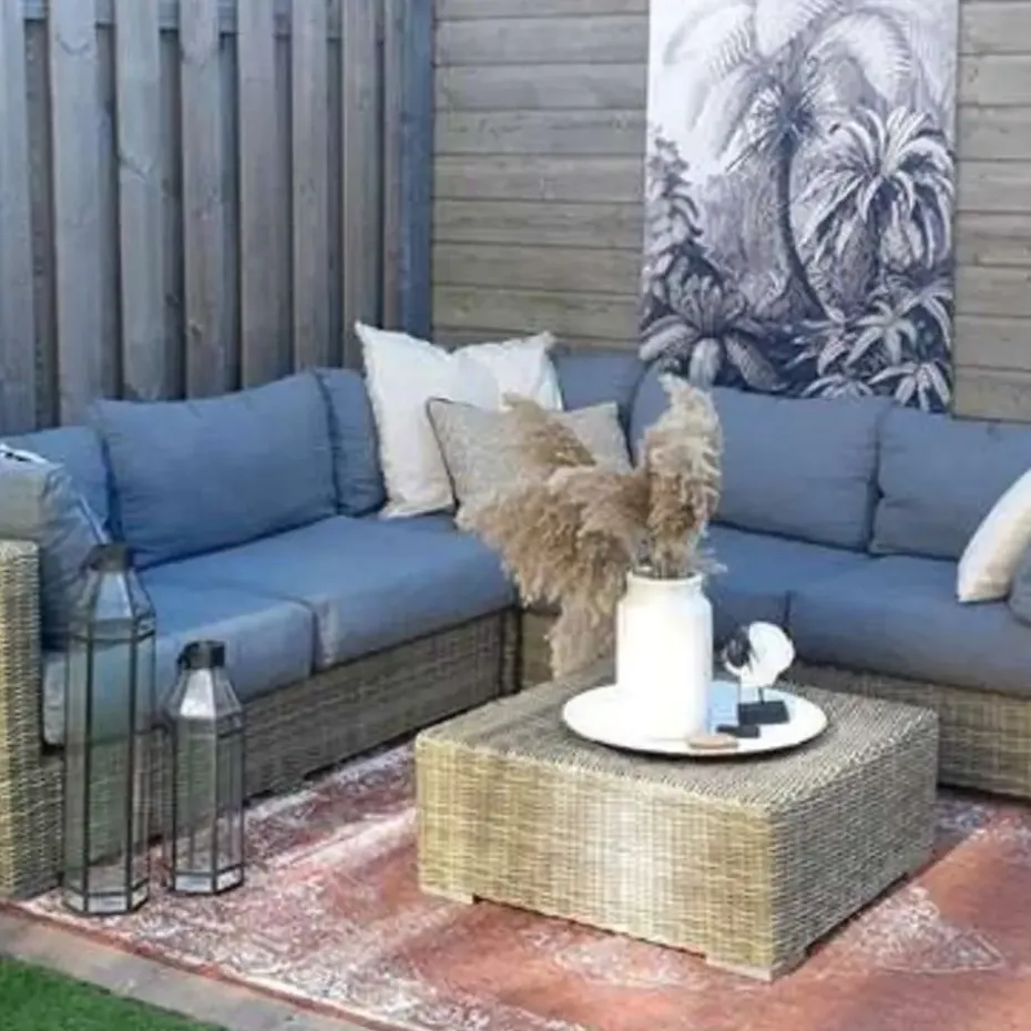 Wat leuk is aan de buitenvloerkleden van Eva Interior is dat ze dubbelzijdig te gebruiken zijn, in een handomdraai heb jij dus een totaal ander kleed met tegengestelde kleuren!