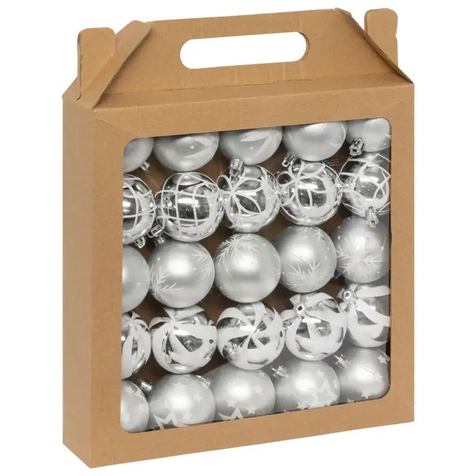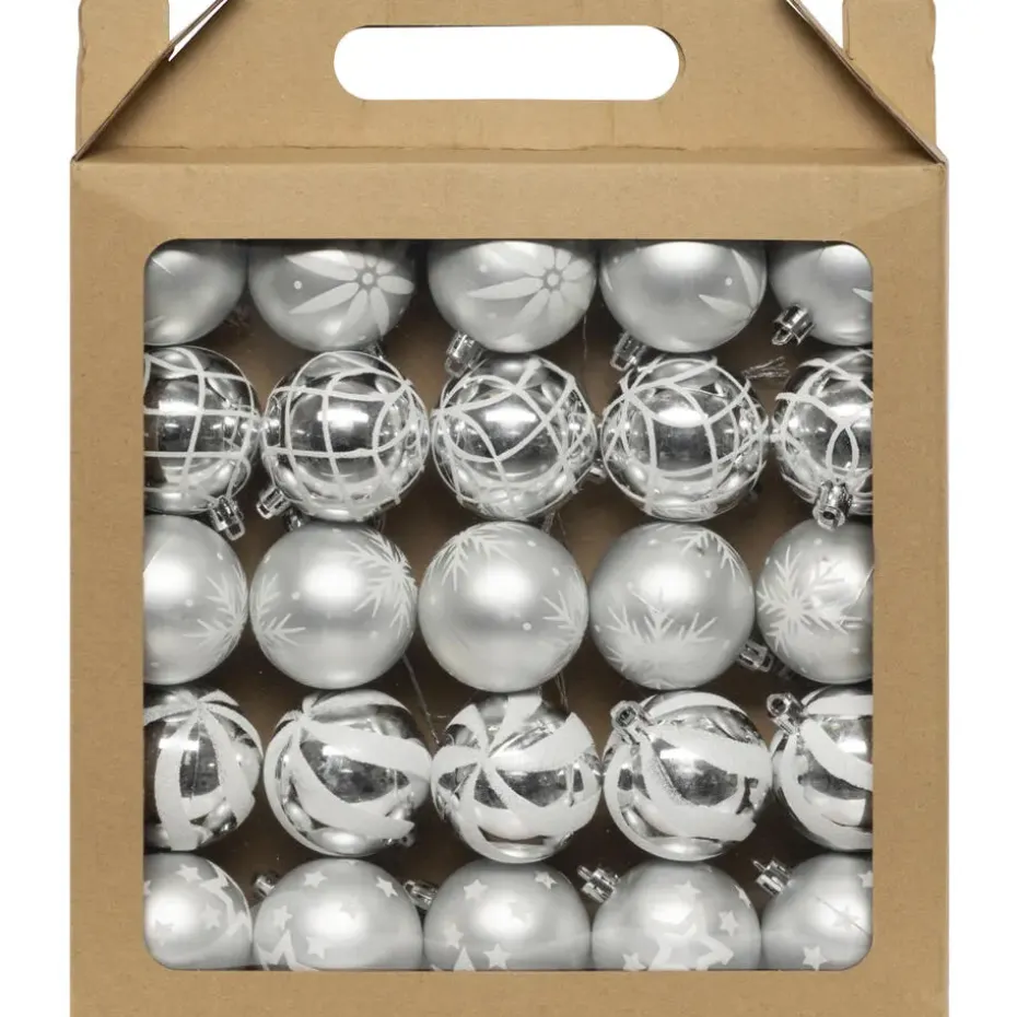 Luxe gedecoreerde kerstballen. Mooie set van gedecoreerde kerstballen in de kleur zilver met wit. De set bestaat uit 25x stuks kerstballen van 6 cm doorsnee en zijn vervaardigd uit kunststof. De kerstballen zijn perfect om de kerstboom mee te versieren. Wij adviseren u om kerstbalhaakjes mee te bestellen (niet inbegrepen).