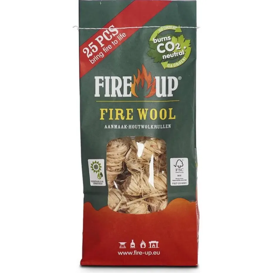 25x Fire-Up Barbecue aanmaak houtwolkrullen. Deze barbecue aanmaakblokjes zijn reukloos, niet giftig en erg makkelijk in gebruik. Geschikt voor bijvoorbeeld haard, barbecue, vuurkorf of kampvuur.