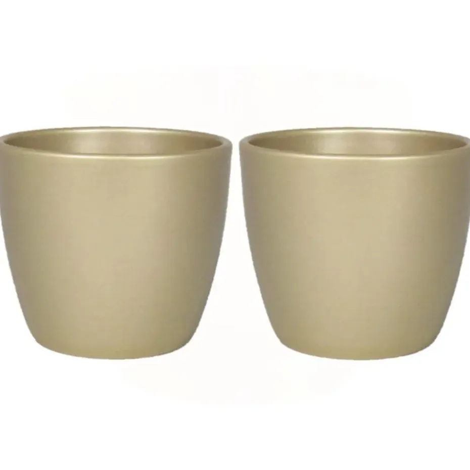 Bloempot/plantenpot van keramiek in het parelgoud. Bloempotten met een mooie gladde afwerking aan de buitenkant. Gewicht: 4.4 kilo. Het keramiek heeft een coating zodat het geen water opzuigt. Formaat: diameter 32 cm, hoogte 27 cm. Model: Boule.