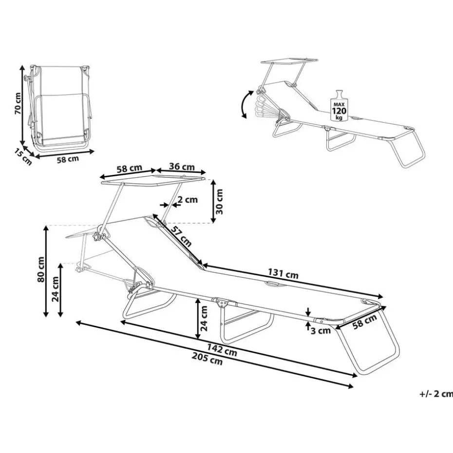 Belangrijkste eigenschappen: Functioneel zonnedak beschermt tegen zon en wind, Rugleuning in 5 posities verstelbaar, Modern terras- en tuinmeubilair, UV-bestendigheidsklasse 3 (ISO 105-B02), Gemaakt van natuurlijke, weerbestendige materialen