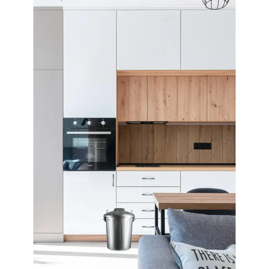 Afvalemmers/vuilnisemmers in de kleur zilver van 21 liter met deksel. Materiaal: kunststof. Afmetingen: ca. 35 x 33 x 42,5 cm. Ideaal voor in de keuken, slaapkamer of op kantoor.