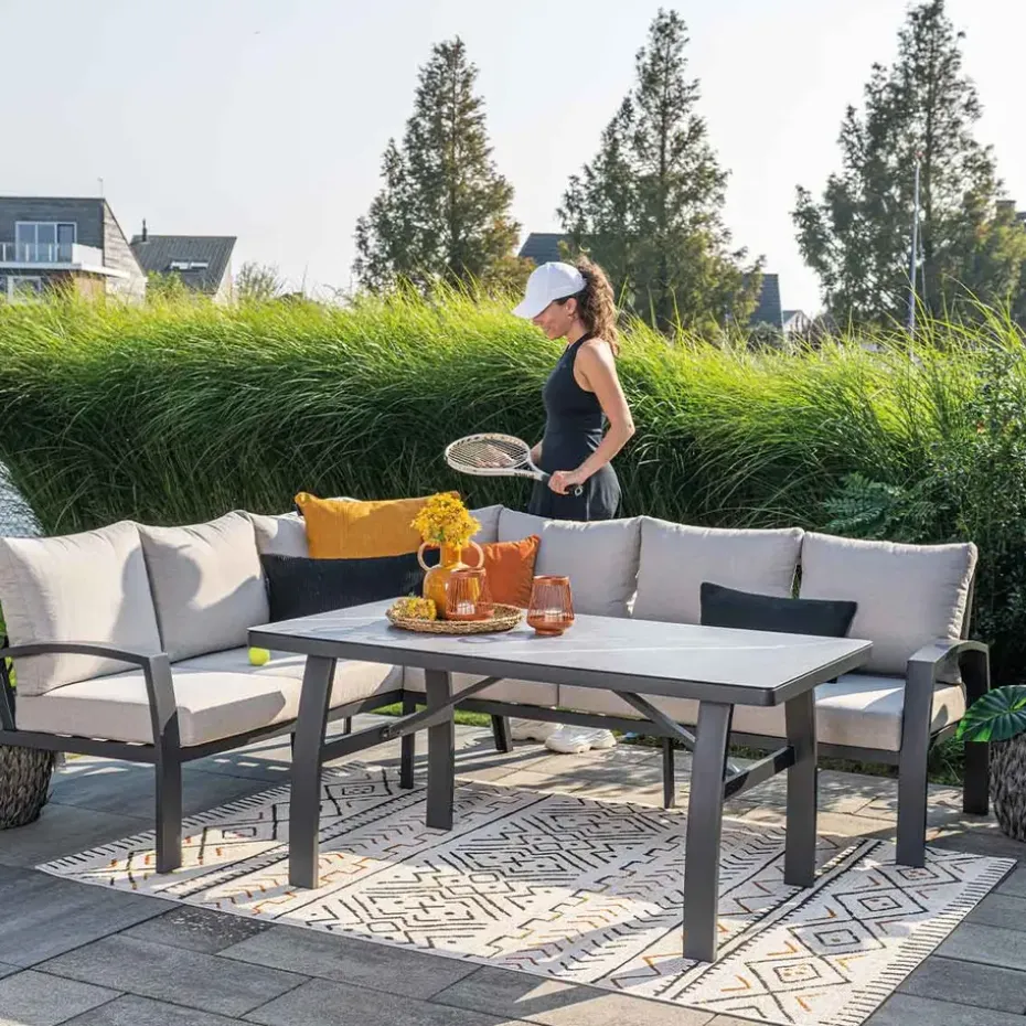 Een vleugje Afrika bij jou thuis? Met het buitenkleed Malawi oker op jouw terras of in jouw tuin waan je je met een beetje fantasie gemakkelijk in Afrikaanse sferen. De kleurstelling en het typisch herkenbare Afrikaanse patroon zorgen voor een fijne warme sfeer. Het Malawi vloerkleed voor buiten is vervaardigd uit een hoogwaardige kunststof, polypropyleen genaamd. Dit materiaal heeft als voordeel dat het zeer weersbestendig is en daardoor heel geschikt voor gebruik buitenshuis. Het buitenkleed is hitte- en vuurbestendig, kleurvast en gemakkelijk schoon te maken. Met de stofzuiger verwijder je eenvoudig loszittend vuil als stof en zand. Heb je vlekken? Dep deze dan schoon met een natte doek. Het formaat van het Malawi buitentapijt is 200 bij 290 cm. Het buitenkleed Malawi oker is ook te koop in de formaten 120 cm bij 170 cm en 160 cm bij 230 cm