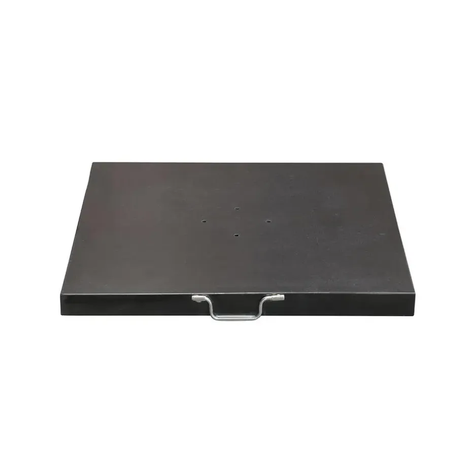 Deze parasolvoet is gemaakt van zwart kleurig graniet waarvan de bovenzijde is gepolijst, waardoor de voet een strakke en luxe uitstraling krijgt. De voet is voorzien van twee nylon wielen in crème kleur, waarmee je de parasolvoet kunt verplaatsen. Kortom, de stijlvolle look van hoogwaardig natuursteen met het gemak van een verrijdbare parasolvoet. De Hawaii parasolvoet 80 kg is geschikt voor alle reguliere Hawaii parasols van Garden Impressions ook voor de Hawaii S parasol. De afstand van de vier voorgeboorde gaten voor de montage van de parasol op de voet bedraagt 11,5 cm. Voor iedere Hawaii parasol is dit hetzelfde.