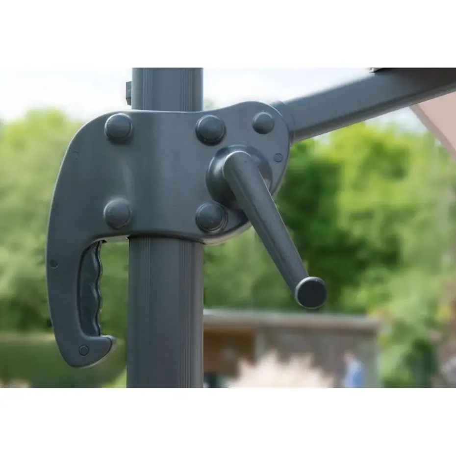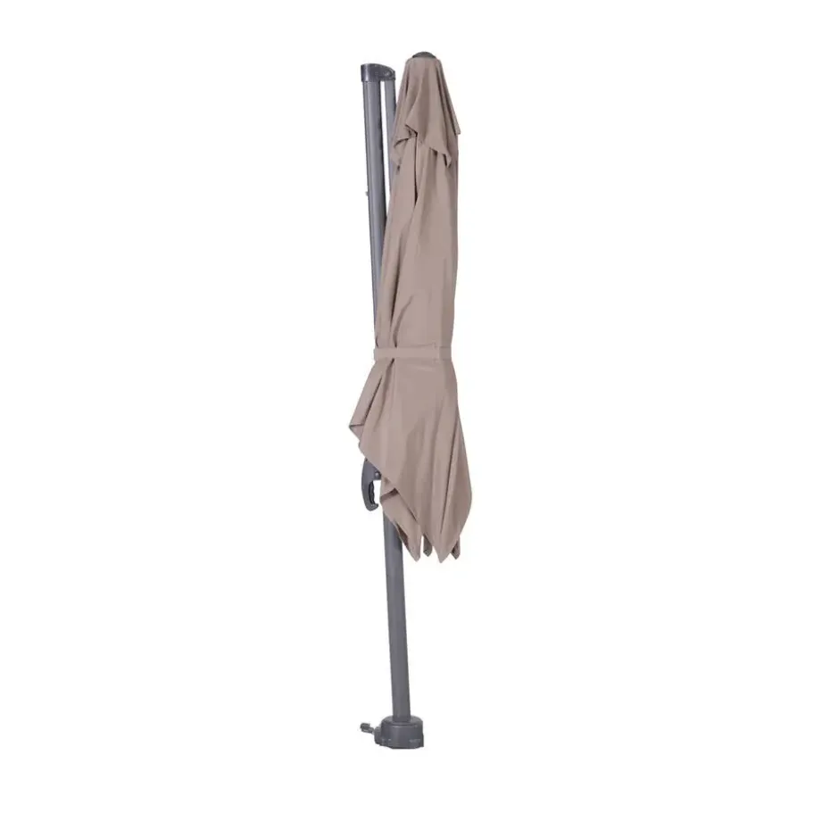 Wil je echt helemaal kunnen genieten in de tuin? Dan is de Hawaii S parasol van Garden Impressions onmisbaar. Iedereen heeft af en toe de behoefte om de verkoeling van de schaduw op te zoeken. Met de Hawaii S parasol is dit kinderlijk eenvoudig. Deze parasol zet je met gemak schuin in iedere gewenste stand en draait hem gemakkelijk (360 graden) rond. De Hawaii S parasol is gemaakt van hoogwaardige kwaliteit materialen. De parasol beschikt over een 180 grams parasoldoek wat zorgt voor zonfactor bescherming 30. De Hawaii S is spatwaterdicht. Bovendien is het doek voorzien van een brandwerende PA-coating en een windvanger, zodat de wind goed weg kan als deze onder de zweefparasol komt. Het aluminium frame is voorzien van een hoogwaardige kwaliteit poeder coating. Deze coating is dusdanig sterk dat het kras- en stootvast is. De Hawaii S parasol hoef je in principe niet te verplaatsen, want vanuit één positie creëer je schaduw waar deze nodig is. De Hawaii S parasol van Garden Impressions zet je gemakkelijk schuin, door middel van het handvat schuif je het doek in verschillende standen schuin tot bijna 90 graden. Daarnaast kun je de Hawaii S parasol 360 graden rond draaien. Na gebruik kun je gebruik maken van een Hawaii S parasolhoes welke los aangeschaft kan worden, hierdoor kun je de zweefparasol tijdens zonnige dagen buiten laten staan. Bij slecht weer til je de zweefparasol gemakkelijk van de voet en berg je deze op in de schuur. Bij de Hawaii S parasol zijn verschillende voeten verkrijgbaar om de parasol stevig in de tuin te plaatsen. Je kunt kiezen uit een kruisvoet, grondanker of een luxe granieten Hawaii S 60 kg voet met wielen. De totale hoogte van deze parasol is 235 cm. Het taupe kleurig parasoldoek heeft een doorloophoogte van 210 cm en heeft een diameter van 250 cm