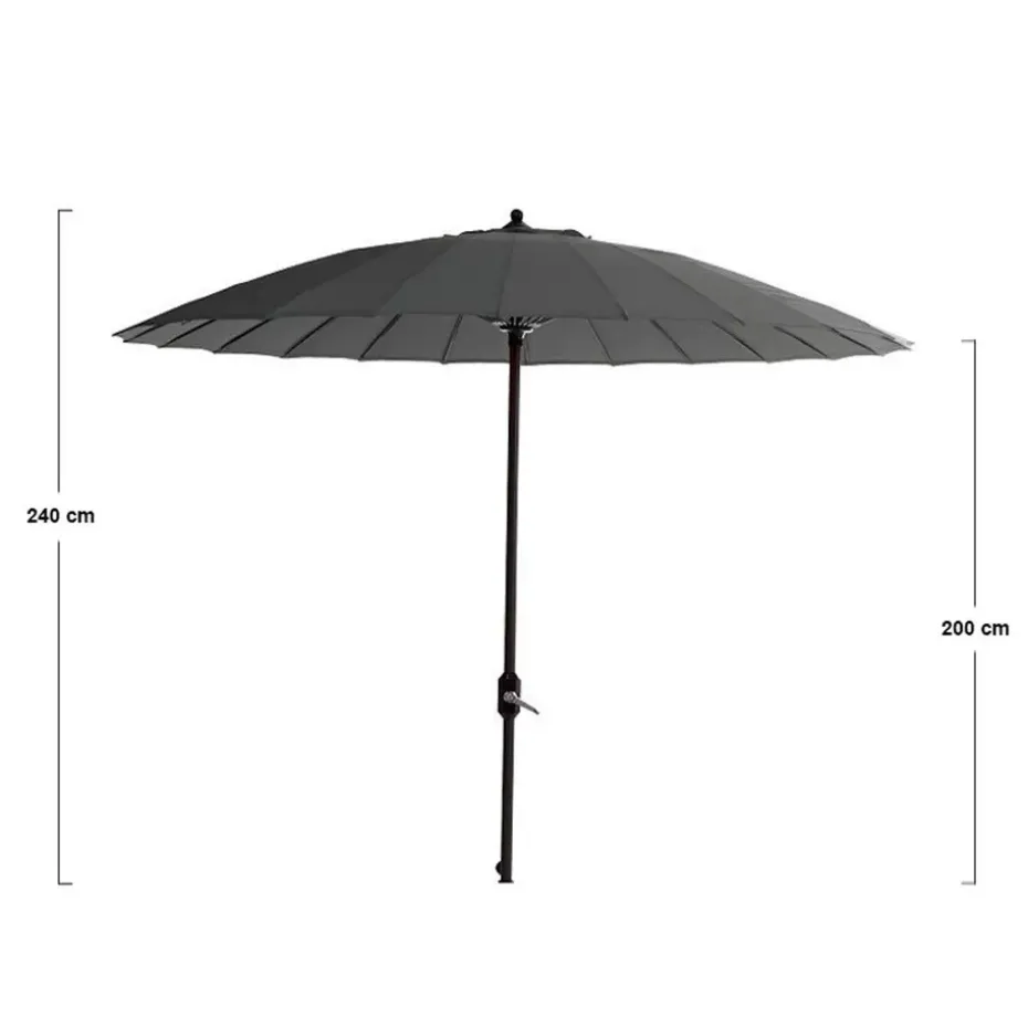 Na gebruik van de parasol kan je deze beschermen met een parasolhoes welke los aangeschaft kan worden. Hierdoor kun je de parasol tijdens zonnige dagen prima buiten laten staan. Bij slecht weer til je de zweefparasol gemakkelijk van de voet en berg je deze op in de schuur. Deze parasol heeft een Aluminium frame in de kleur royal grey met een polyester donker grijs kleurig parasoldoek. De totale hoogte is 240 cm, waarvan de doek hoogte 200 cm is en 250 cm in diameter.