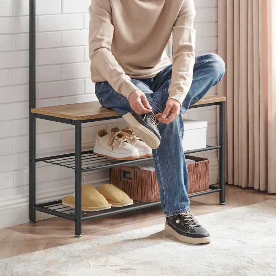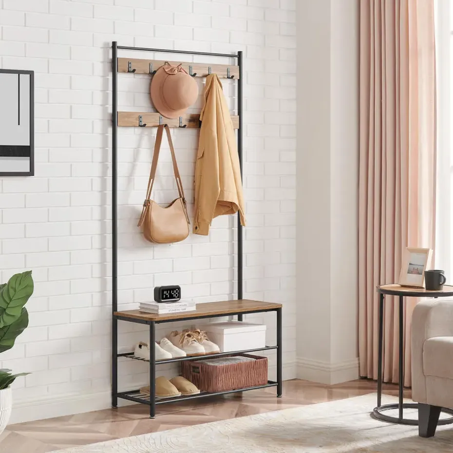 Multifunctioneel: kapstok, schoenenrek én zitbank in 1 meubel