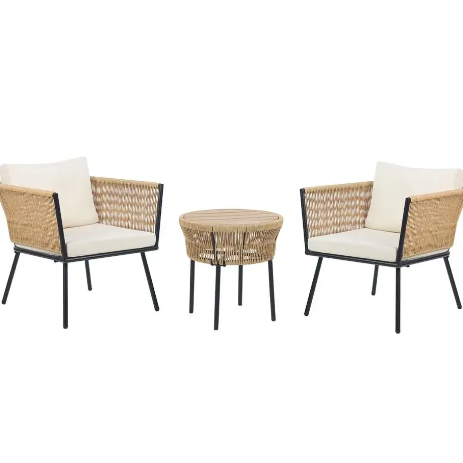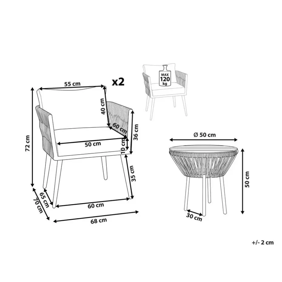 Tekst weerstand: Door de speciale afwerking is dit productoppervlak bestand tegen roesten. Dit product kan dus buitenshuis gebruikt worden. Wanneer de meubels niet in gebruik zijn, raden we je wel aan om ze onder een beschermhoes of op een droge plek te bewaren.