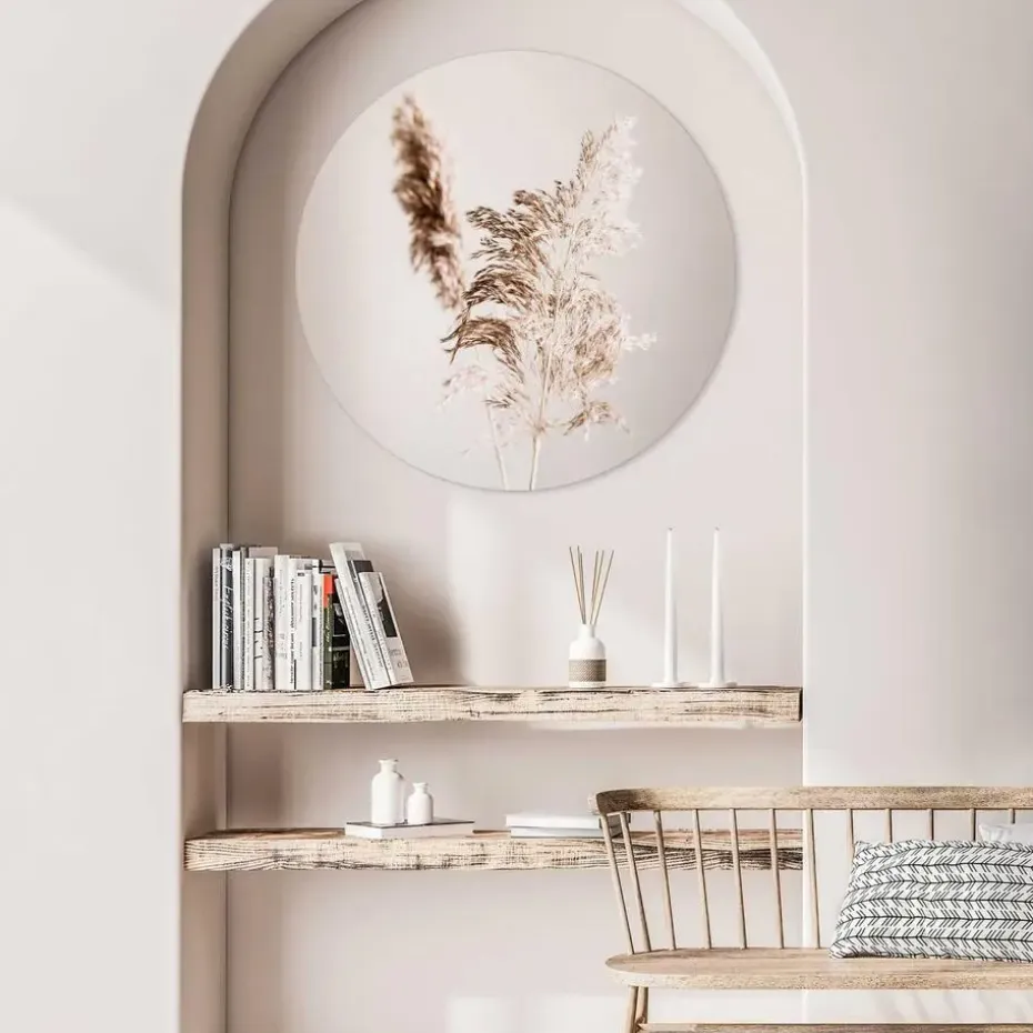 Print op 4mm dik ESG-veiligheidsglas, compleet met voorgemonteerde wandmontage en afstandhouders. De ronde vorm van de glasprint onderstreept op subtiele wijze het kenmerkende karakter van de afbeelding. Kenmerken