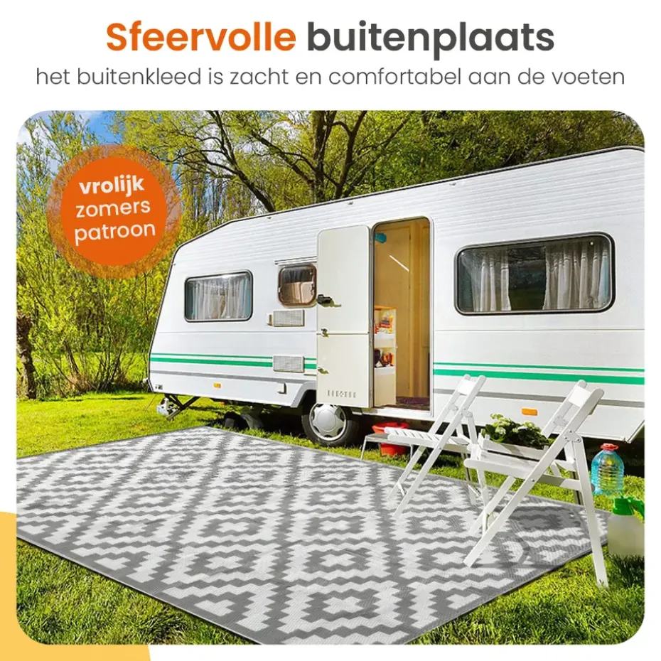 · Veelzijdig te gebruiken – Je kunt het buitenkleed zeer veelzijdig gebruiken. Zo kun je het kleed in de tuin neerleggen, op het terras neerleggen en zelfs op de camping gebruiken.
