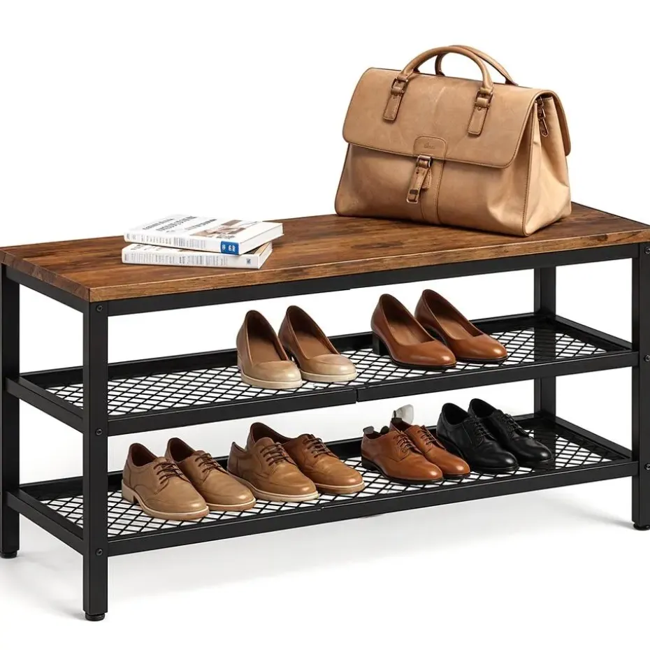 Met de schoenenbank met 3 lagen van Goliving haal je een stijlvol item in huis dat tevens zeer praktisch is. Deze industriële schoenenrek combineert de warmte van hout met het stoere karakter van metaal. Het bruine en zwarte kleurenschema past perfect in ieder interieur.