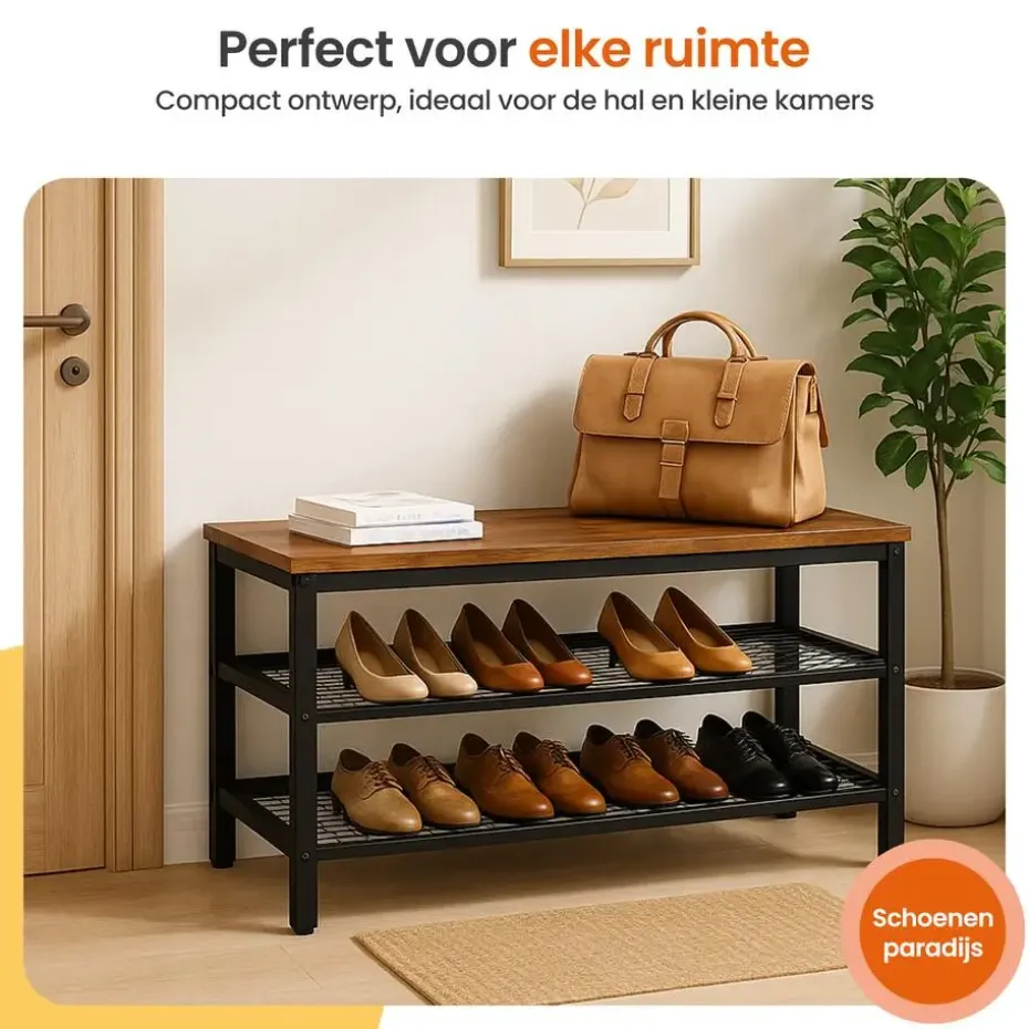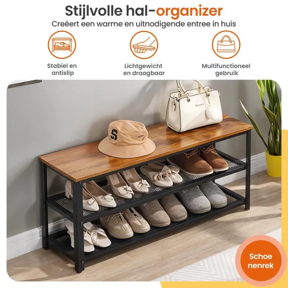 - Met deze schoenenbank met 3 lagen heb je nooit meer een rommelige entree!
