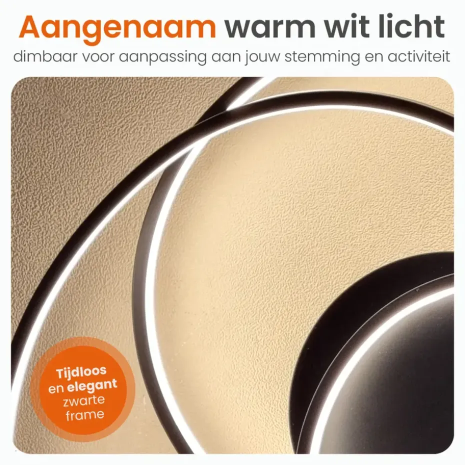 De plafondlamp heeft een uniek ringen design. Hierdoor wordt het licht op een speelse manier door de ruimte verspreid en geniet je van een prachtig effect! Verder heeft de lamp een warm wit lichteffect, perfect voor een romantisch etentje of een gezellige filmavond!