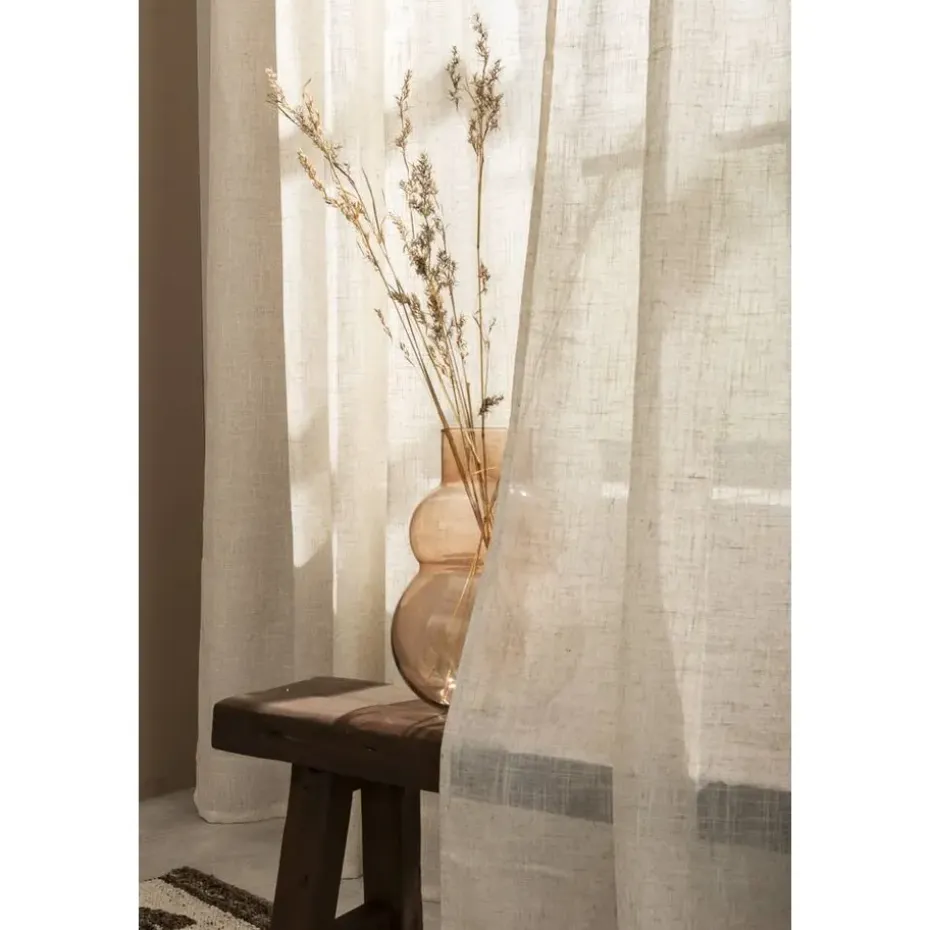 Inbetween kant en klaar gordijn Dante zand heeft een natuurlijke rustige uitstraling en is gemaakt van 15% linnen en 85% gerecycled polyester. De gordijnstof is een linnen blend en heeft daardoor een zachte look die je ruimte een luxe sfeer geeft. Deze gordijnstof heeft een GRS keurmerk, dit is een kwaliteitscertificaat voor recyclede materialen.
